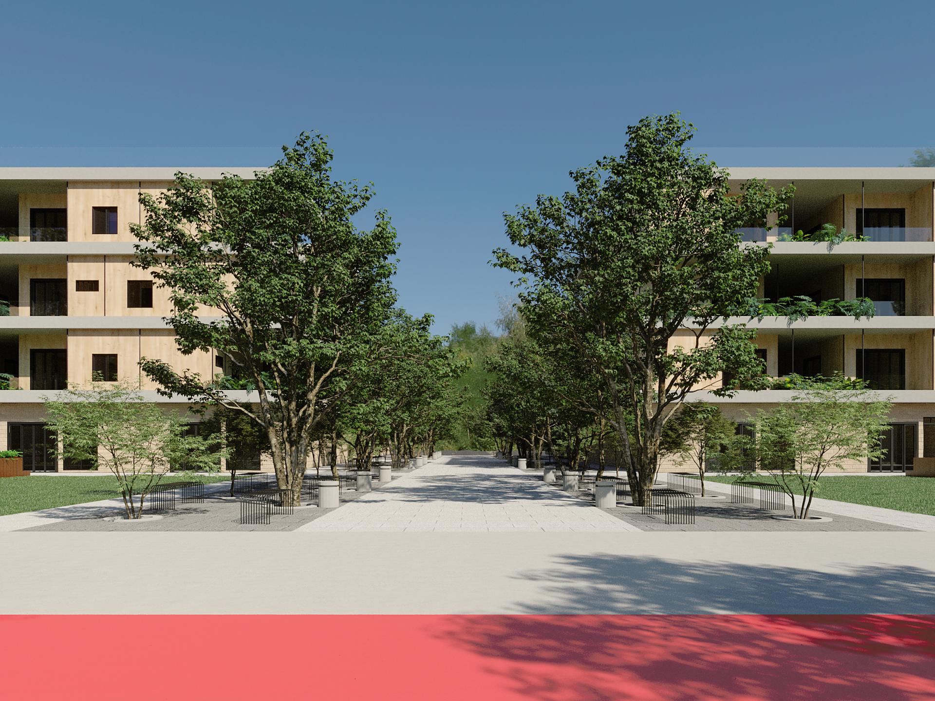 A galeria comercial localizada no térreo conta com duas tipologias de planta: uma destinada ao comercio e outra destinada à pequenos restaurantes e cafés, sendo a ultima, voltada para a praça onde se encontram os parklets. Acima da galeria, esta a cobertura, que atua como terraço para os 3 edifícios residenciais, equipada com um grande gramado para que todo o ambiente seja cercado de verde. No corredor principal da galeria, encontram-se duas aberturas no telhado verde, por onde entra a iluminação natural e caem como uma chuva verde as plantas pendentes na borda da abertura.
