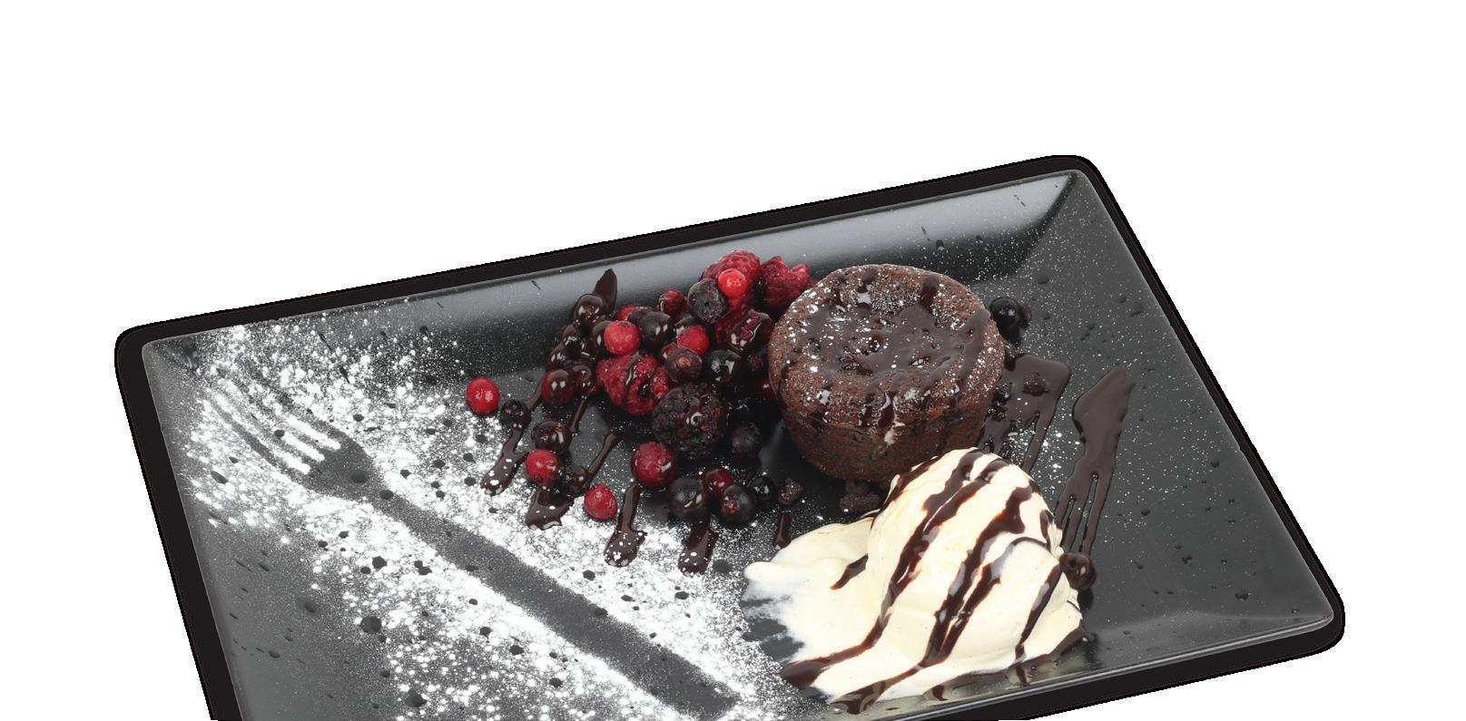 Saldoled vanilija, čokoldani kolač, preljev šumsko voće, čokoladni preljev. Vanilla ice cream, chocolate cake, forest fruit topping, chocolate topping. sadrži alergene: 7