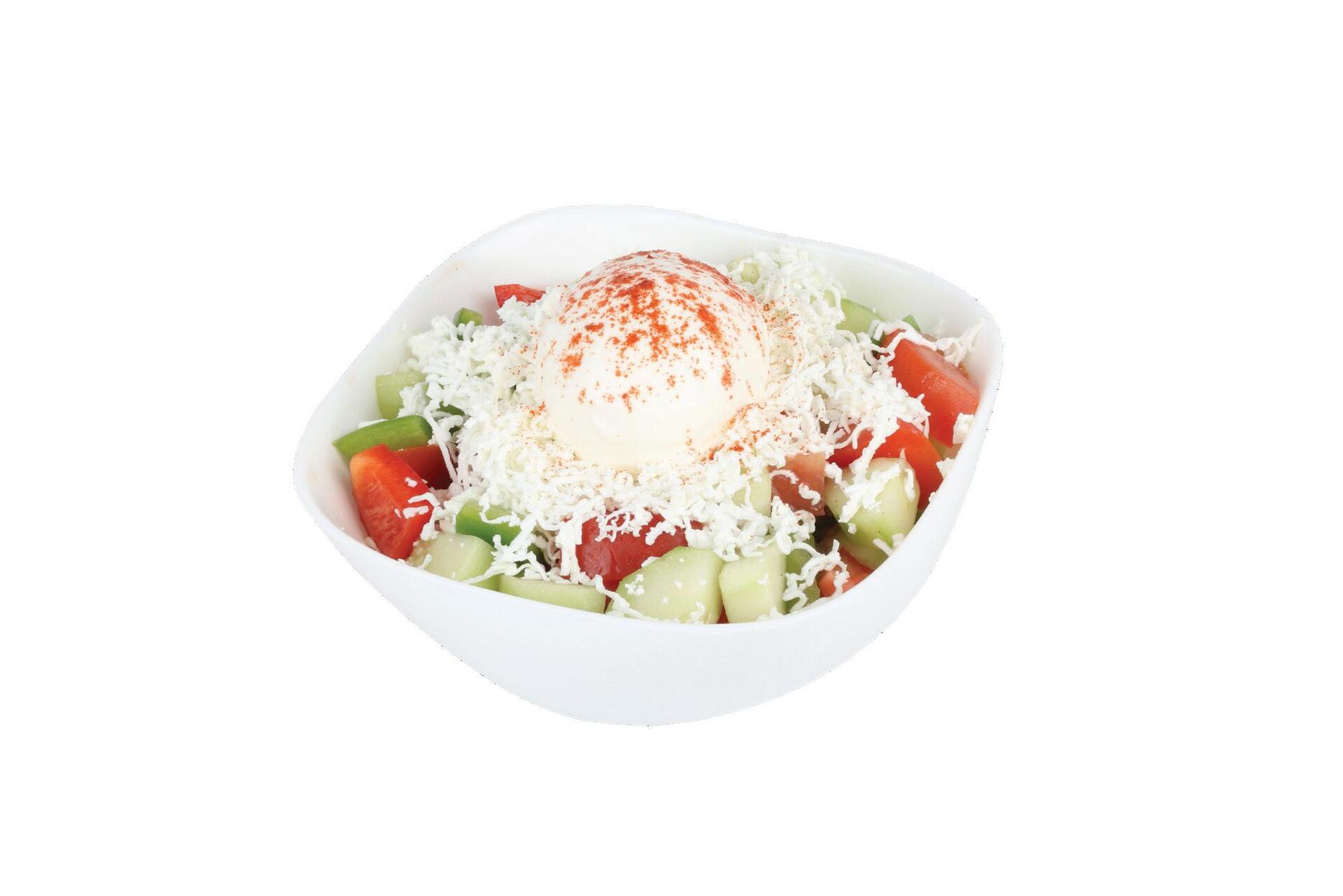 Paprika, rajčica, krastavci, feta sir, vrhnje (Peppers, tomatoes, cucumbers, feta cheese, sour cream)
