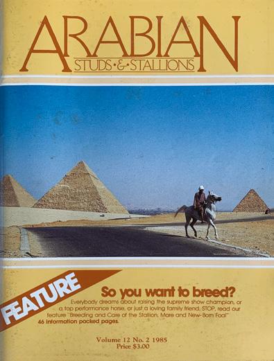 Arabian Studs and Stallions has always been published in volumes. In some years there were two magazines published in the same volume, resulting in a total of 58 individual publications and covers over the history of the magazine.