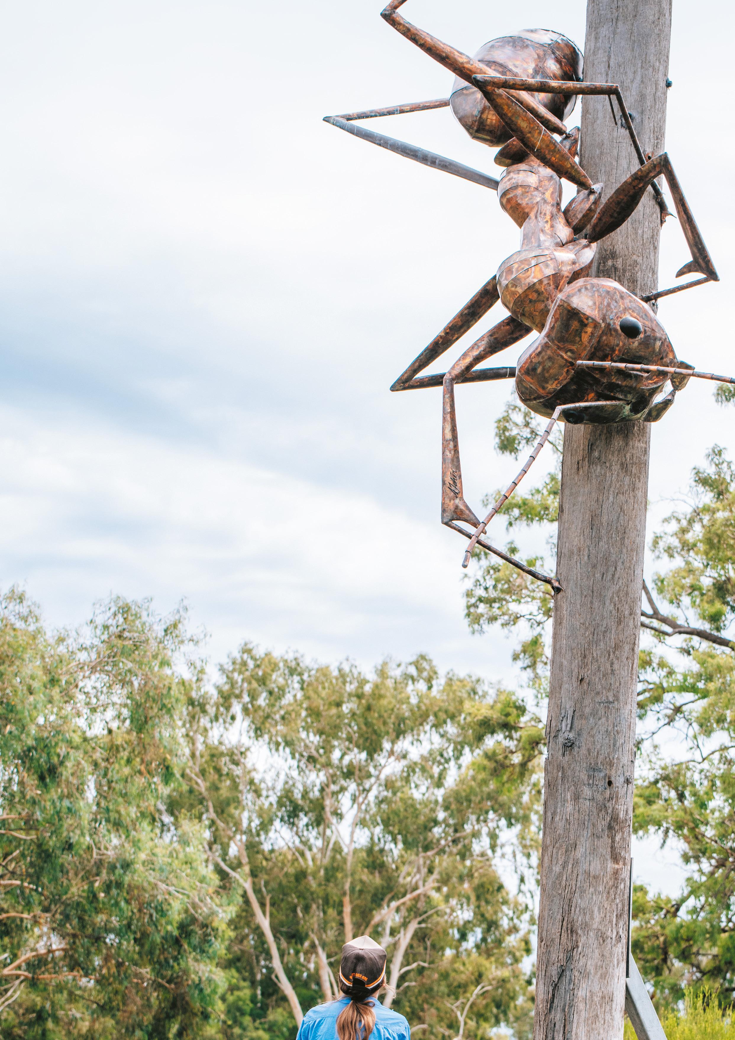 Pop into Boadicea Gallery & Cinema to view an exhibition of heritage photographs and watch the 1956 movie ‘Smiley’ (based upon a local identity), take a photo with the giant Meat Ant or wander around town and look at the wonderfully rustic wrought iron sculptures and murals that line the main street.