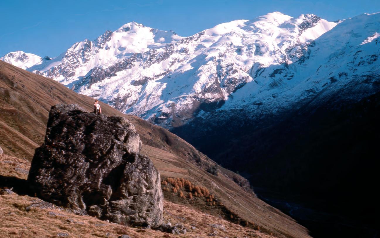 Eine andere Grenze öffnet sich in Richtung Kaunertal und Piztal, also nach Nordtirol, diesmal aber nur für Hochtouristen und Schifahrer. Der kleine Mann auf dem riesigen Felsblock oberhalb von Melag wird vielleicht eines Tages hier mit den Skiern gleiten. Geplant ist die Erschließung des hintersten Langtauferertales über den Alpenhauptkamm. Was werden dazu die Saligen Frauelen und die scheuen Berggeister sagen?