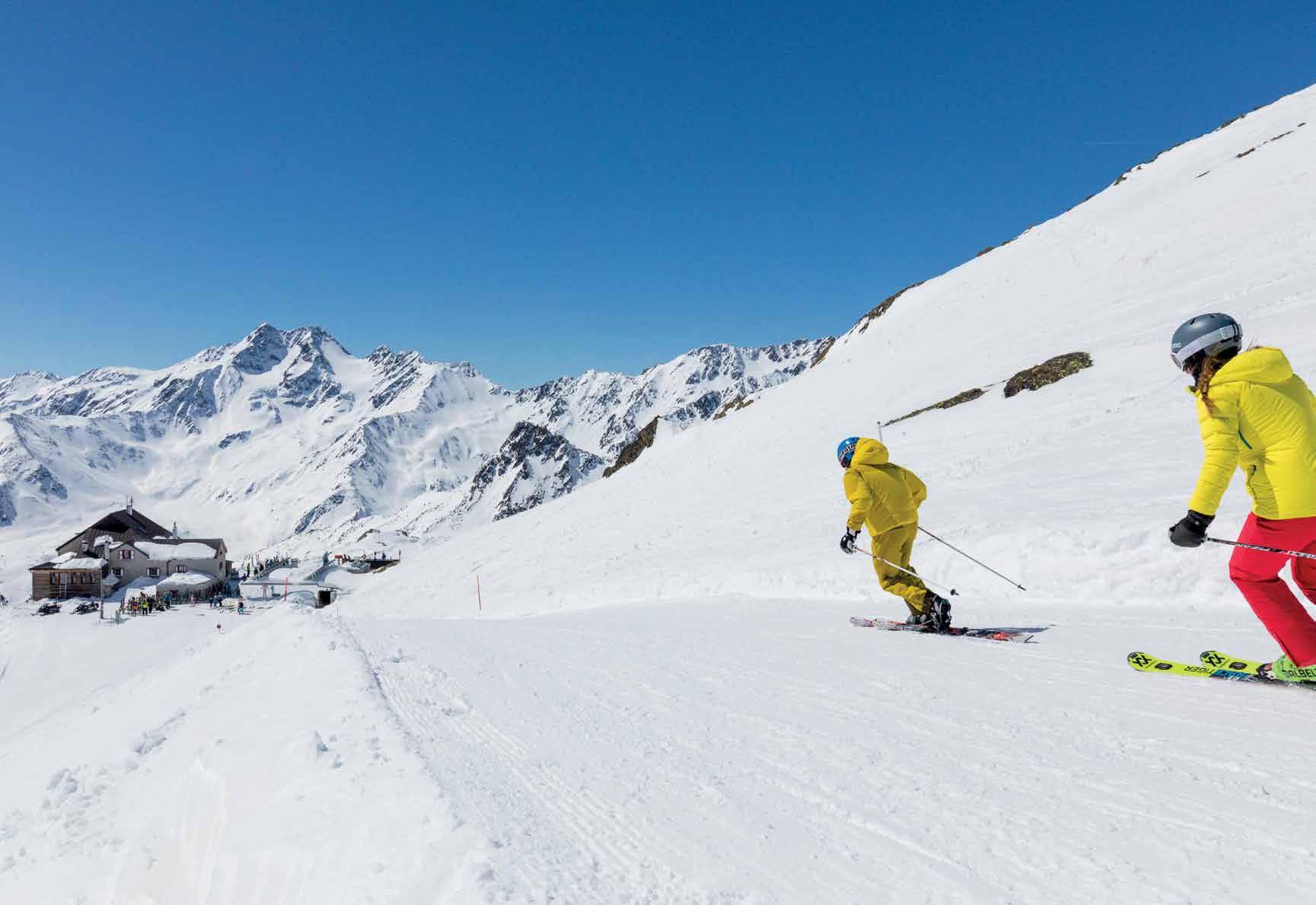 November in Betrieb. Das Skigebiet, das sich in einer Höhenlage von 1.900 bis 3.250 Metern befindet, ist aufgrund seiner bemerkenswerten Geografie schneesicher. Die 44 km Pisten sind aufgeteilt auf drei Hänge – Langenstein, Kanzel und Madritsch. Die Hänge Kanzel und Langenstein sind über einen Skiweg miteinander verbunden. Die Auswahl der Pisten ist fundamental: Es gibt Pisten, die sind sanft für Anfänger, cool für Fortgeschrittene und herausfordernd für Edeltechniker. Das Panorama ist in Sulden naturgegeben, aber auch „first class“ und königlich: Ortler, Königsspitze, Zebrú - atemberaubend. Nach dem Skifahren und mit Hunger im Bauch ist der Genuss auf der Madritschhütte (2.820 m), auf der feinen K-2-Hütte doppelt: mit Panoramablick schmecken herzhafte Gerichte und Getränke hervorragend.