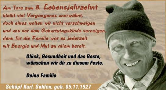Familien Pohl aus Glurns und Weissenhorn aus Matsch, Ellhof möchten allen, die an der Beerdigung von Samuel und Florin teilgenommen oder uns auf andere Weise ihr Mitgefühl kundgetan haben ein aufrichtigen Vergeltsgott sagen.