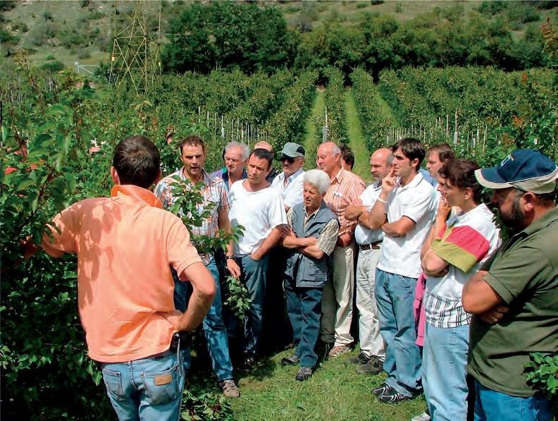 Die Vi.P ist seit August am pfelruder. Die Vermarktung der heurigen Ernte erfolgt von der Latscher Zentrale aus. Kalibrierte Sortiermaschinen und ein Preiszuschlag für die kleineren dafür rotbackigeren Äpfel der Bauern aus dem oberen Ende des Apfeltales waren neben anderen Vorbereitungen vorausgegangen. Vi.P-Direktor Sepp Wielander hat seine Vision Wirklichkeit werden lassen: kompakter Auftritt des Vinschger Apfels am Markt. In unmittelbarer Nähe der Vi.PZentrale ist zudem die Fusion zwischen Ortler (Obmann Alexander Janser) und Mivo (Obmann Thomas Oberhofer) ge-