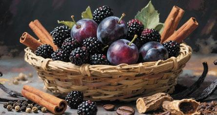 Doft: Nyanserad, mycket fruktig doft med fatkaraktär, inslag av björnbär, viol, skogshallon, choklad, mörka körsbär och kanel.