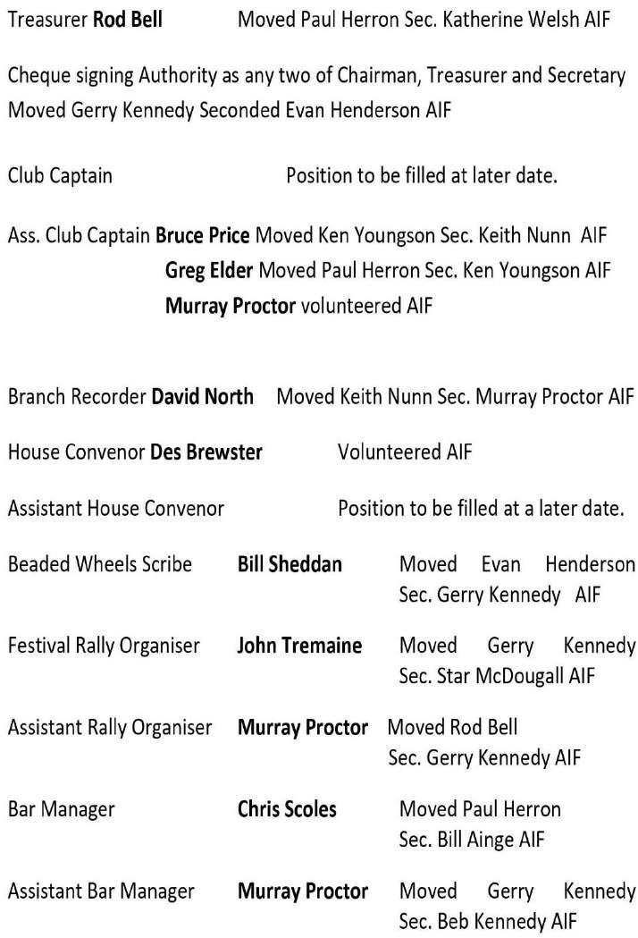 To all who have held positions, be it maintenance or building crews, rally organizers or executive, etc., a huge thanks. And a special thanks to Bill Ainge, Katherine Welsh and Rod Bell with your positions at the top table.