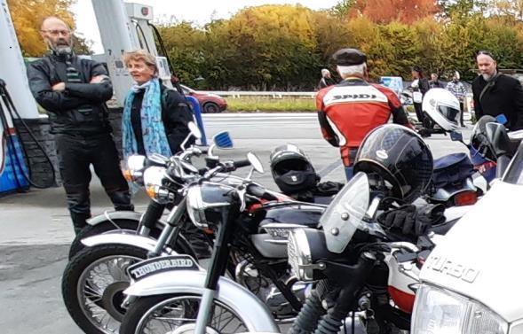 This month’s run was something a bit different combining with the Distinguished Gentleman’s ride. Ten motorbikes took part from our club with a combined total of about forty bikes for a ride in from Springcreek, a circuit around town and out to the Woody for lunch. If it had been a contest we would have done fairly well, oldest bike would have gone to Ross on the AJS by a large margin. Mindy was the only female rider and Paula and John won 2 of the 5 raffles. The ride raised $1,858 and another $677 from the raffle and we flew the flag with our old bangers so a good result.