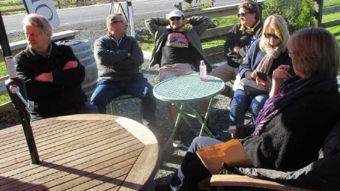 Gordon Dacomb, Vern Hoffman, Jarrod a& Morgan Dacombe , Michele Stevenson, Joe hoffman relax in the sun