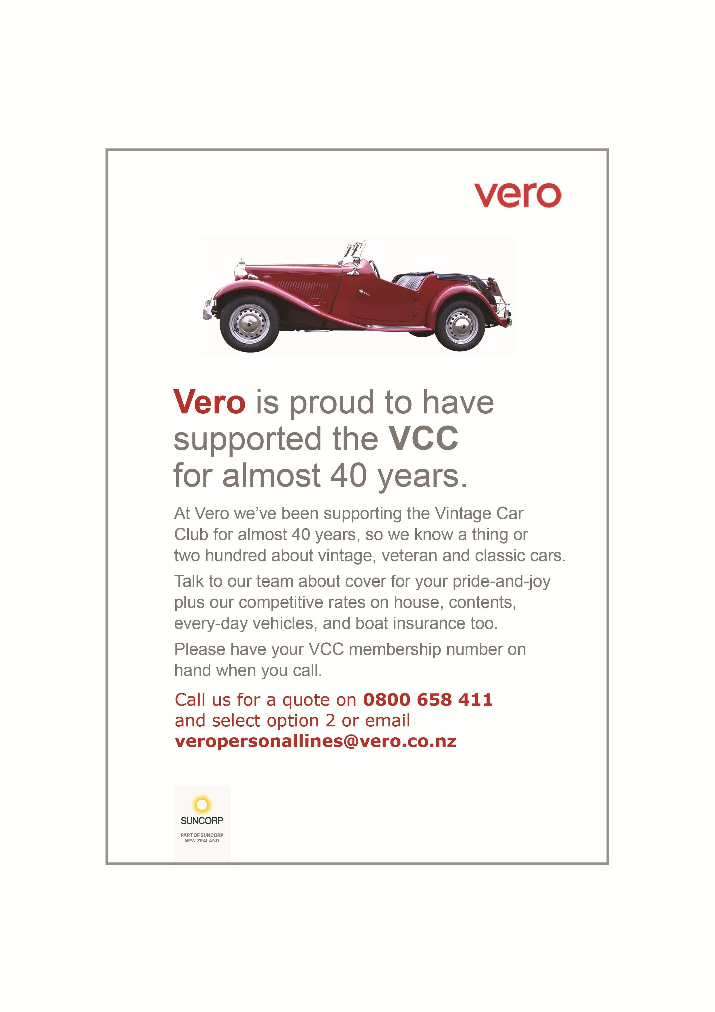Vero Consumer Insurance Specialist F: 0800 505 905 or B: 09 356 4501 Agency Number: 0300126