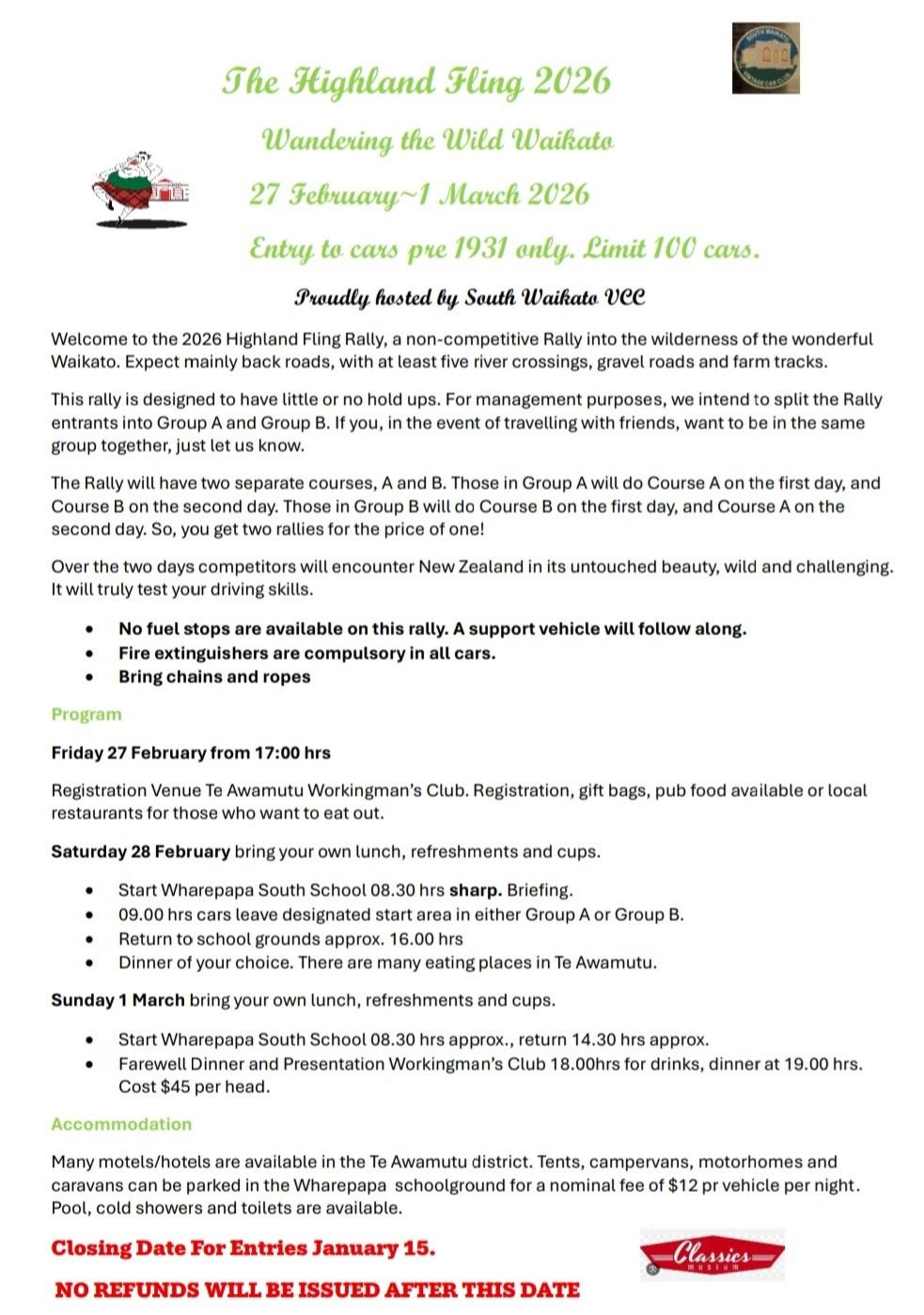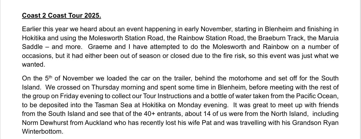 1st. of January 2026 will be the Annual New Years Day Picnic Lunch held at Tuapiro Point and I look forward to meeting up with you all again on that first outing of the New Year.