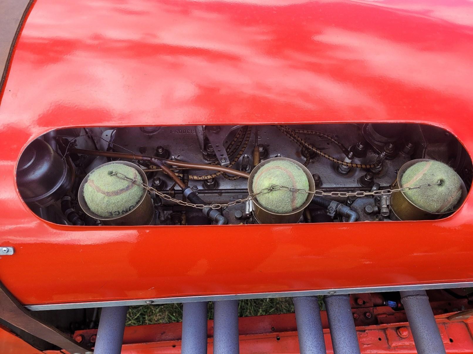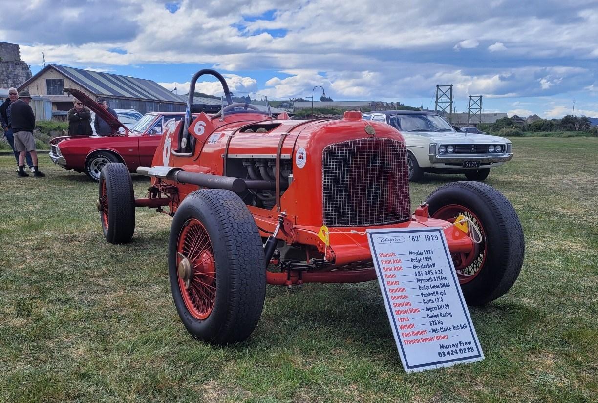 A Red Chrysler Racer that arrived and was displayed with the show cars
