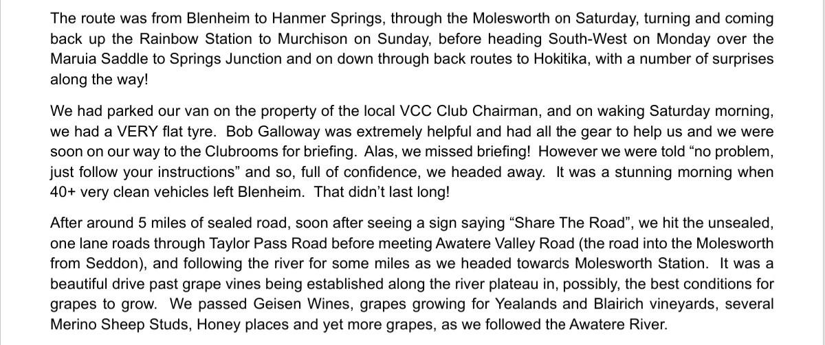 The SOUTH CANTERBURY VCC Secretary Pauline Young regretfully announces the cancellation of the planned February 5th/6th/7th 120 year run celebrating the first powered motor vehicle to Mount Cook.