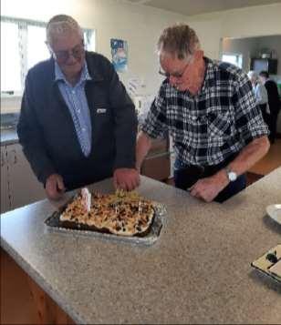 Back on board we had a navigated route through large super flat dairy farms on the Ruawai flats, past a big new solar farm which has panels which follow the sun for optimum efficiency, on to gravel in to rolling farmland featuring an extinct volcanic cone or two. The Aero Club was our RSA catered lunch stop where we mingled and chatted at our leisure, highlighted by the cutting of 21st cake by our Winston Matthews and Dargaville’s George Tier.