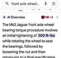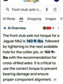 Havingreplacedthefrontdisks(rotors)itthenallhadtobe putbacktogether.Isearchedtofindinformationon tighteningthewheelstubaxlenut.TheHaynesmanualonly specifiesan‘endfloat’measurementof0.003”to0.005”. TheMk2Jaguarusestaperedwheelbearings.Preloading themordoingthemuptootightwouldcauseexcessiveheat andpossiblyearlyfailure.