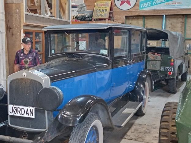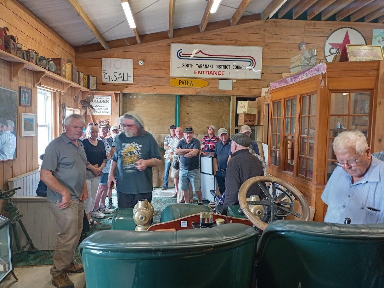 At 1.30, with Byan leading the way we left for our destination on SH45, Surf Highway. Just a short distance from the Hawera town boundary we arrive at Jim Bakers, where we were greeted by Jim. Then followed an interesting viewing of Jim’s collection of Memorabilia which has been built up by him over his lifetime. This included a roadworthy 1926 Jordan, 1904 Darracq, a restored Land Rover, a restored WW II Military Scout Car and a WW II Bren gun carrier under restoration.