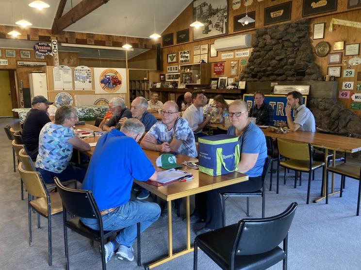 The 2025 event was a leisurely ride to the Lake Ferry Hotel via Western Lake. Nine riders and two in the backup van turned up at Brown Owl by 9:30 for the ride over the hill. However, two were having tyre pressure problems, with one (riding a Triumph) having visited multiple service