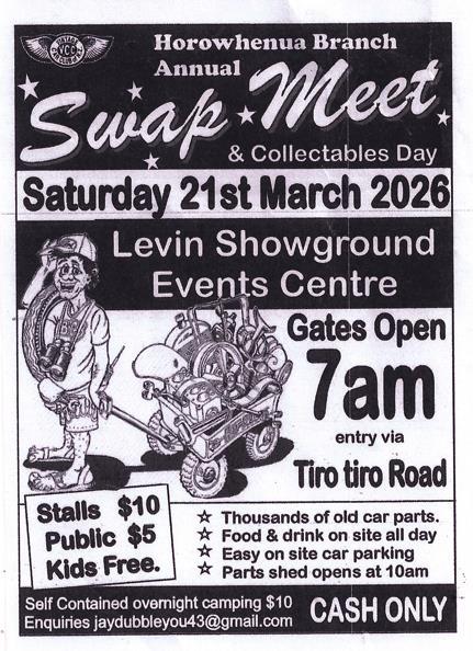 1 March: RAM RODDERS Swap Meet, Car Display and Market Day at Tauherenikau Racecourse. See page 20.