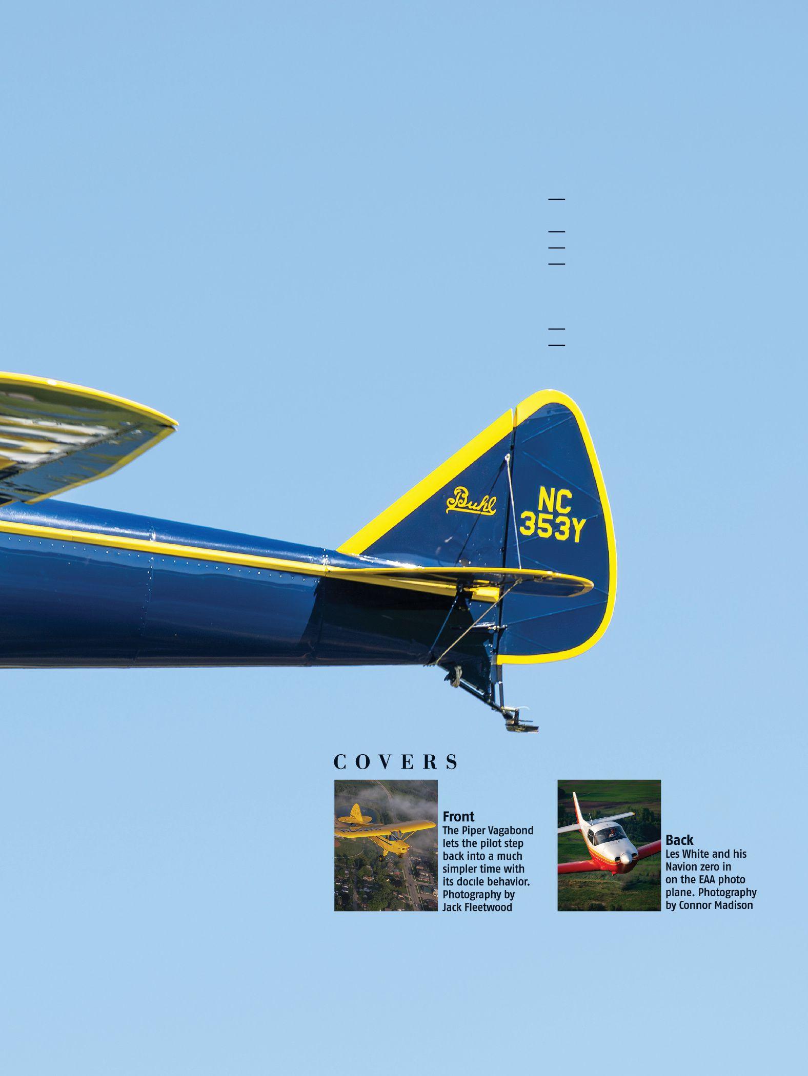 EDITORIAL POLICY: Members are encouraged to submit stories and photographs. Policy opinions expressed in articles are solely those of the authors. Responsibility for accuracy in reporting rests entirely with the contributor. No remuneration is made. Material should be sent to: Editor, VINTAGE AIRPLANE, P.O. Box 3086, Oshkosh, WI 54903-3086. Phone 920-426-4800.