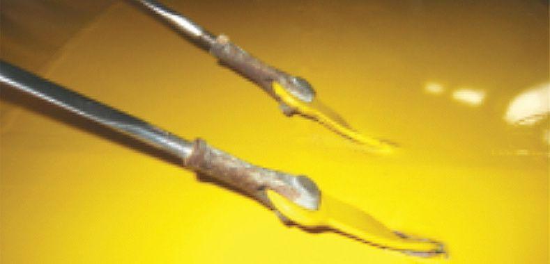 ENDS are made of high-grade steel and heattreated for strength. After this process the ends are plated with cadmium for surface protection against corrosion we call rust. Cadmium is a sacrificial plating process, and corrosive elements will eventually eat away the plating, exposing terminal ends to the corrosive atmosphere. When this happens the ends must be removed, cleaned, and inspected, and the plating reapplied. Photo 1 shows the effects of corrosion on terminal ends. But when you remove these ends the rigging can be affected, causing the owner to have the airplane re-rigged. But now you can use my process of replacing terminal ends without having to re-rig the airplane. Here’s how. First, check the wire tension of each wire before you loosen anything. This will assure the airplane will go back into rig when wires are replaced. I have a Pacific Scientific wire tensiometer that dates back to the Stearman days during World War II. It is very handy. Photo 2 shows the tensiometer in use. Record the tension of each flying wire and each landing wire; however, landing wire tension is determined by flying wire