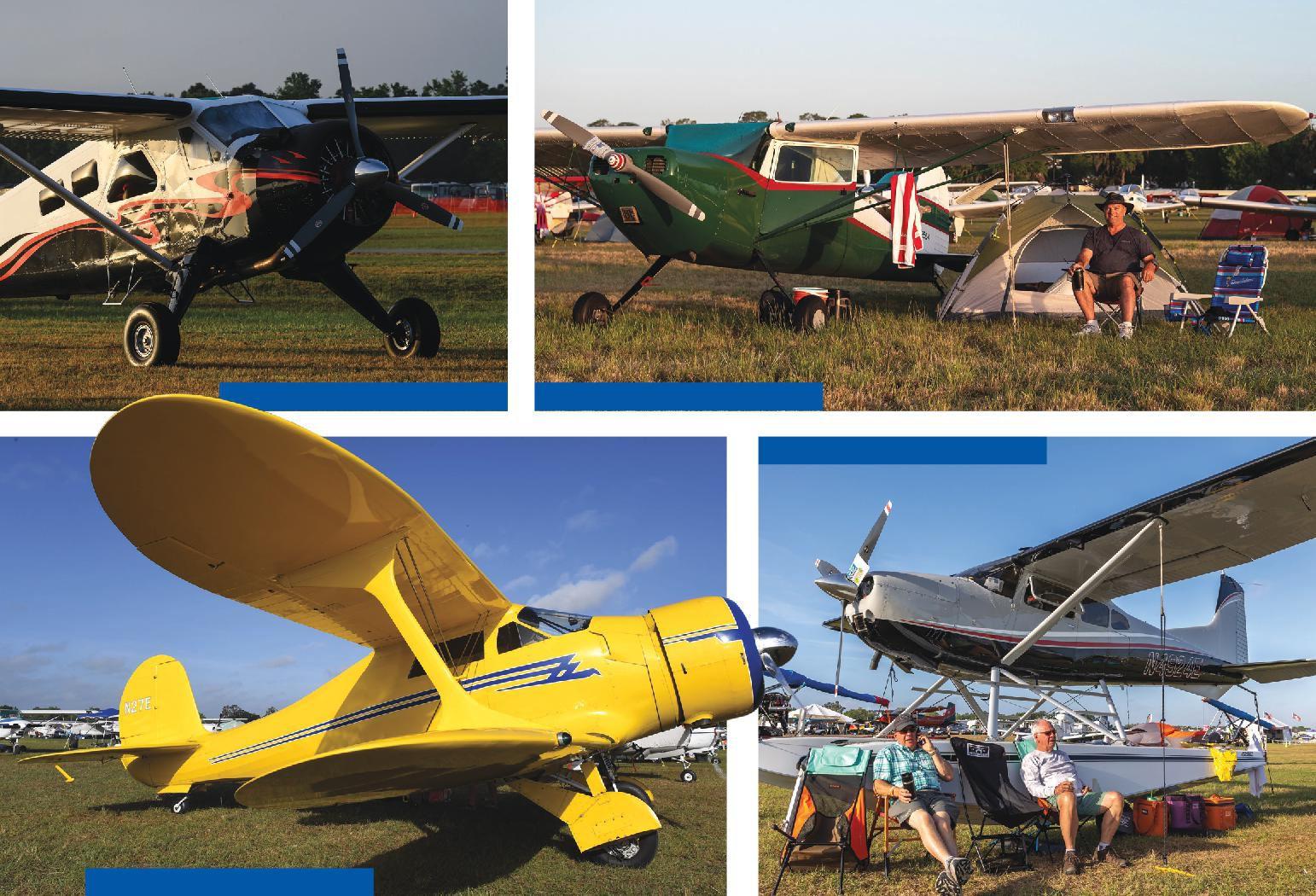 just astounding when you think about it. It is on the Vintage flightline where you can admire the one and only remaining low-wing Stinson TriMotor, the only two restored and flying Howard 500s, and one of the few airworthy Stinson SR-5s in existence. And then there is the “fun and affordable” aircraft display, not only in front of the Red Barn but along the entire Vintage flightline. Fun and affordable says it all. That’s where you can get the greatest “bang for your buck” in our world of vintage airplanes!