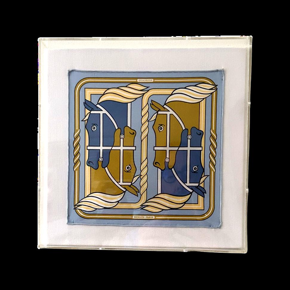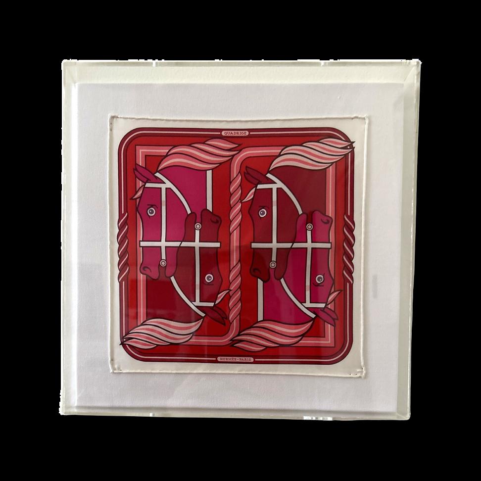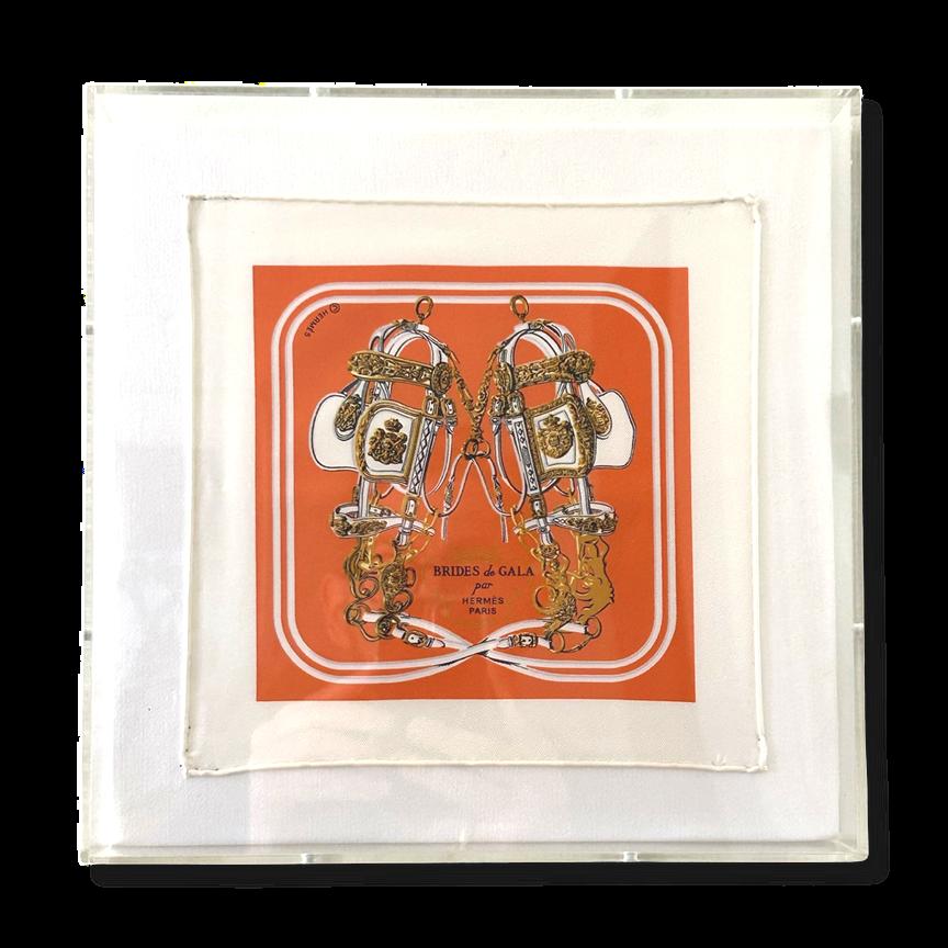 Prices show are MSRP | Trade & Stocking Dealer Discounts Apply All items subject to prior sale wholesale@vintageluxeup com | 310-528-5355 Vintage Hermès Brides de Gala Red 100% Silk One-Of-A-Kind Hugo Grykgar c. 1957 H2234 Framed Scarf Acrylic Shadow Box 10" $898 SOLD OUT