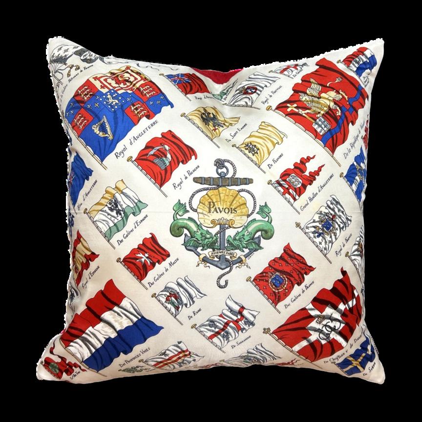 Vintage Hermes Couvertures et Tenues du Jour Red 100% Silk One-Of-A-Kind Jacques Eudel c. 1974 H124P Lumbar Pillow 14" x 35" $1198 SOLD Prices show are MSRP | Trade & Stocking Dealer Discounts Apply All items subject to prior sale wholesale@vintageluxeup com | 310-528-5355