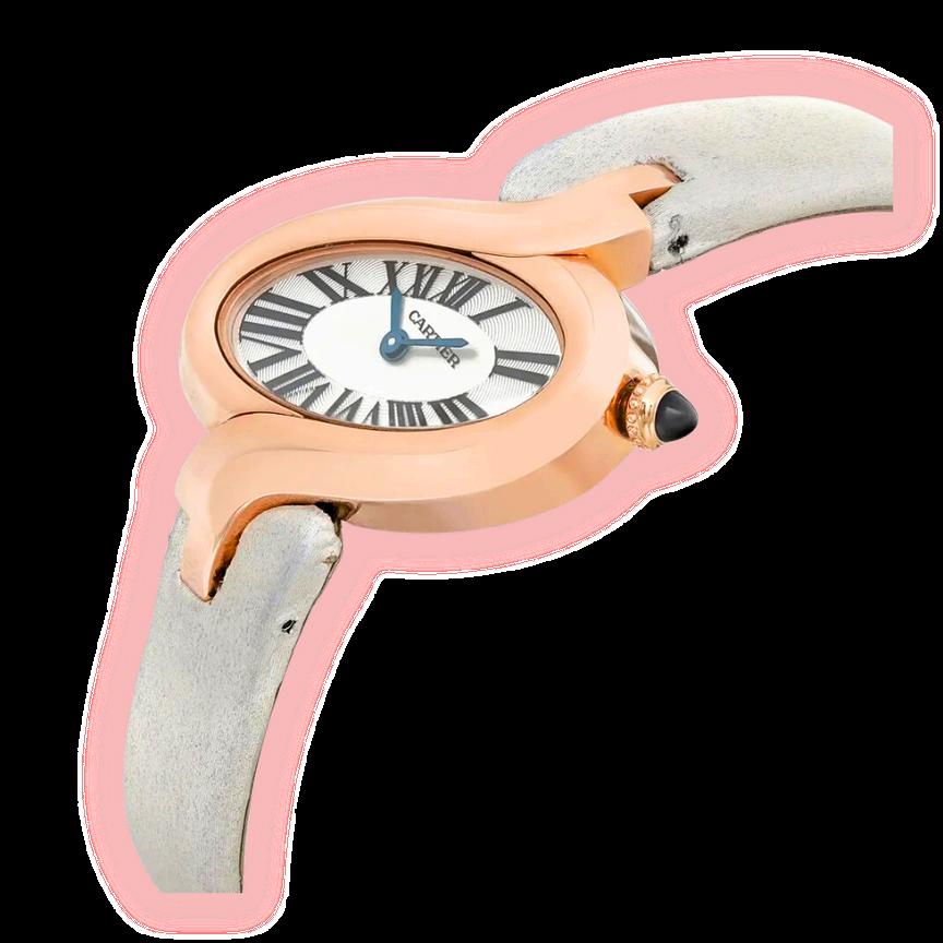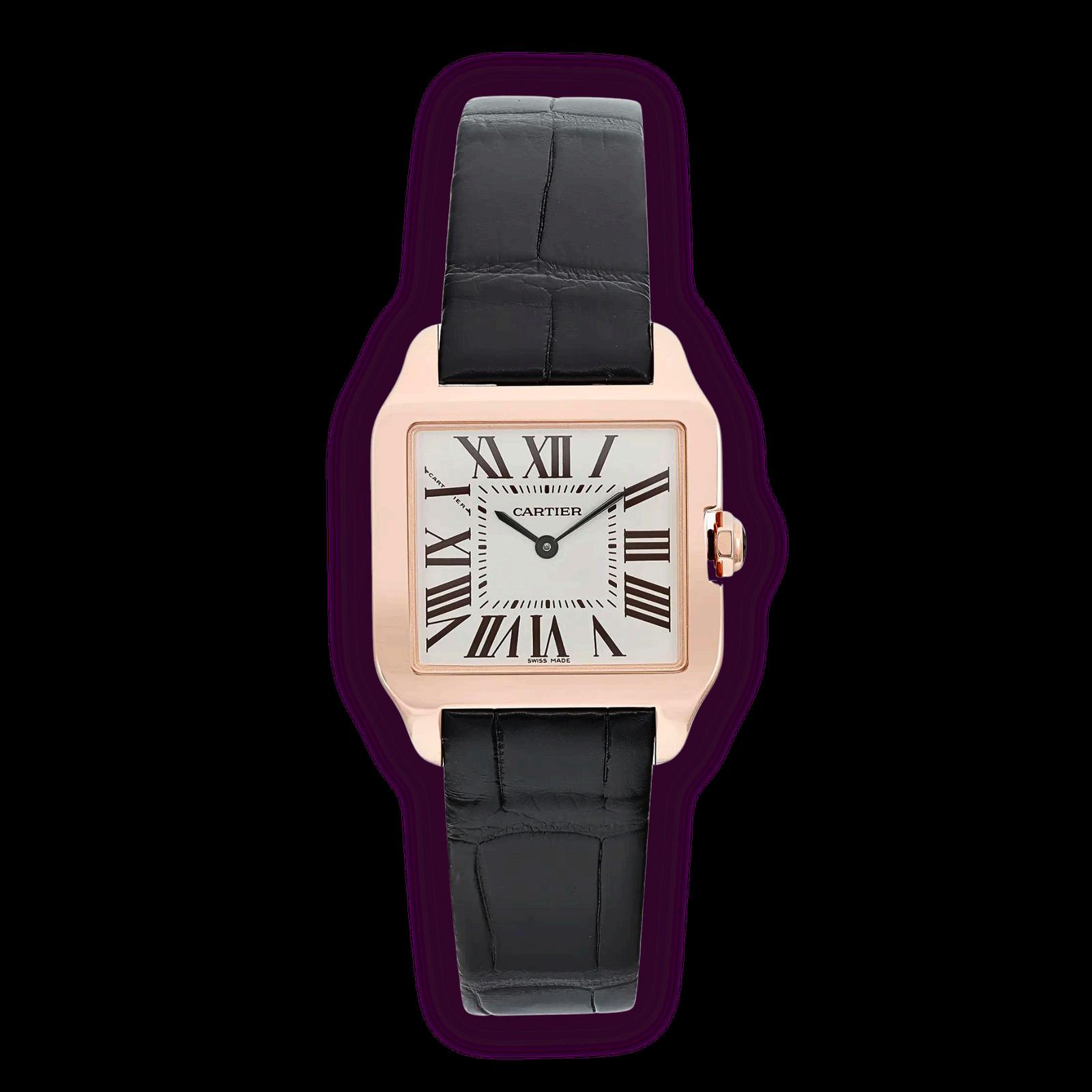 This Cartier timepiece stands as a testament to the brand's unwavering commitment to luxury and precision. Featuring a refined 18K rose gold case, this watch exudes warmth and exclusivity. The pristine white dial serves as a canvas for the elegant Roman numerals and classic Cartier hands, creating a harmonious blend of tradition and modernity.