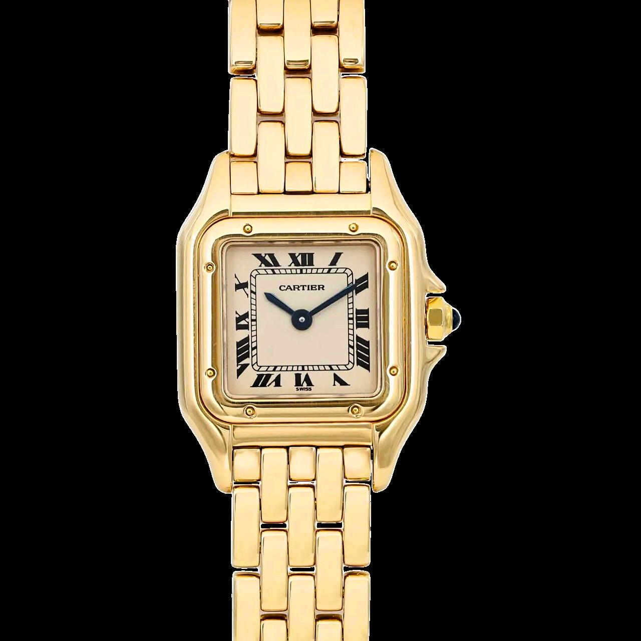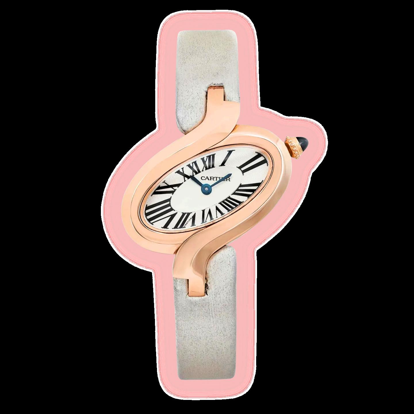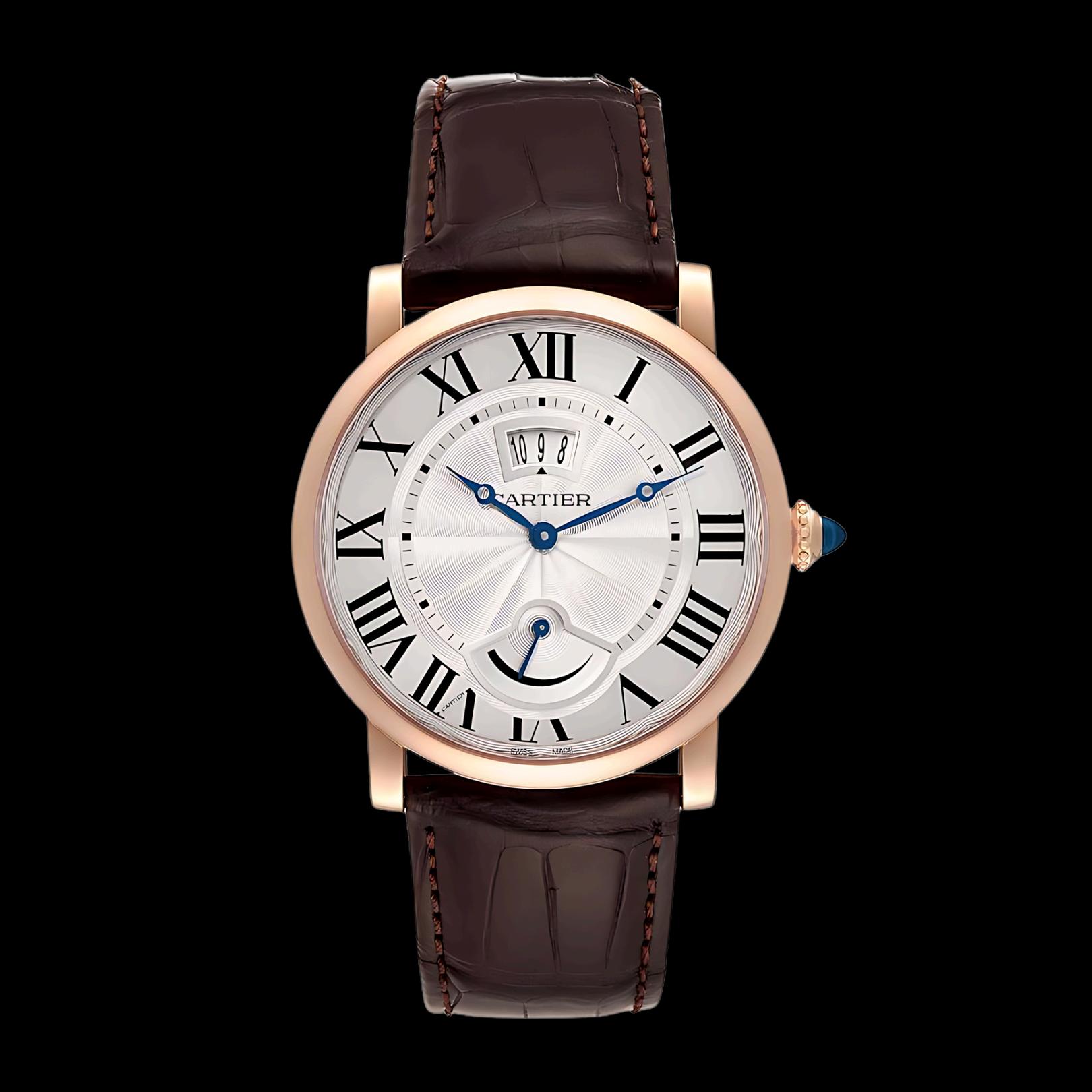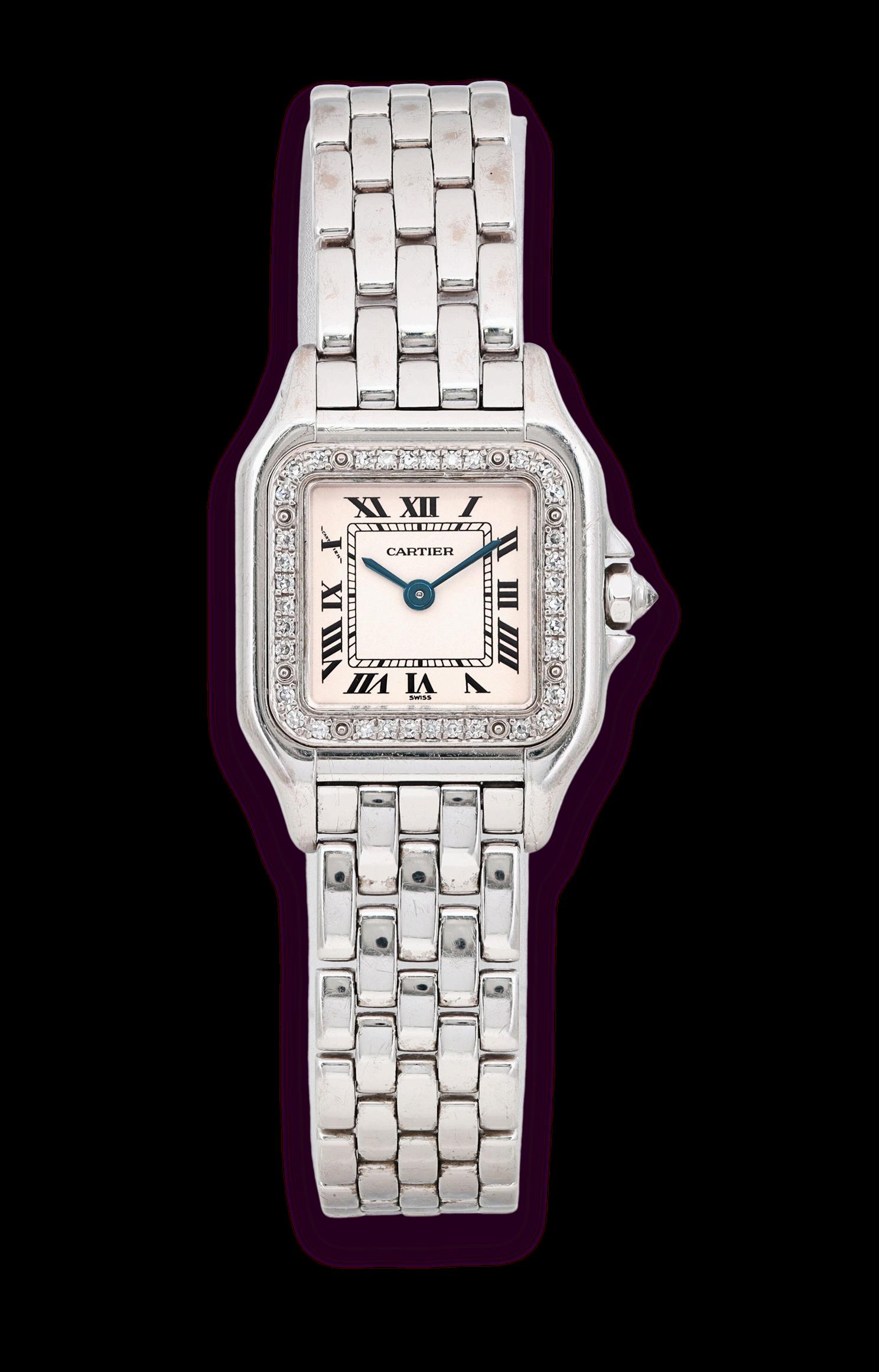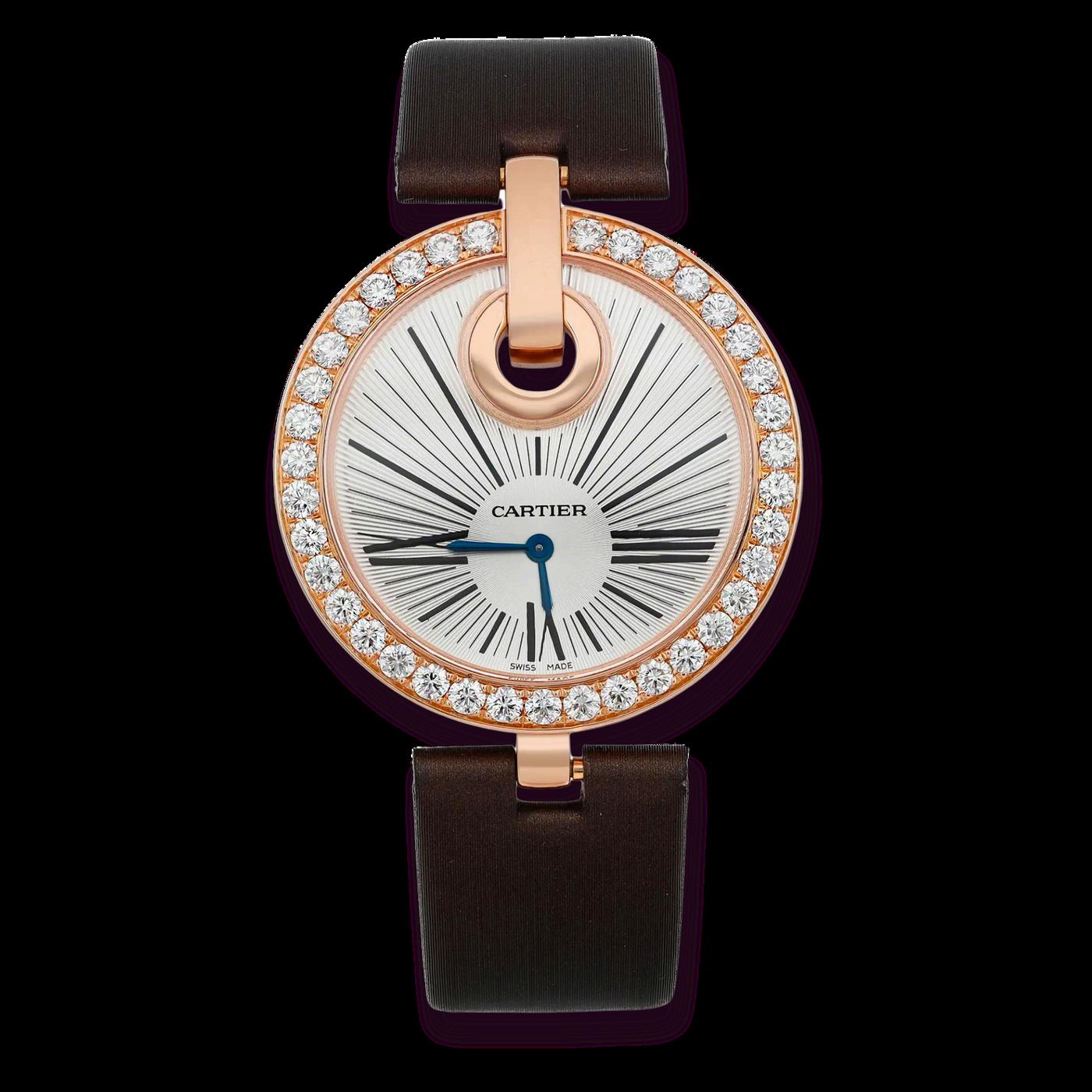 Classic Roman numerals on the dial Blued steel hands, a signature of Cartier’s elegant design