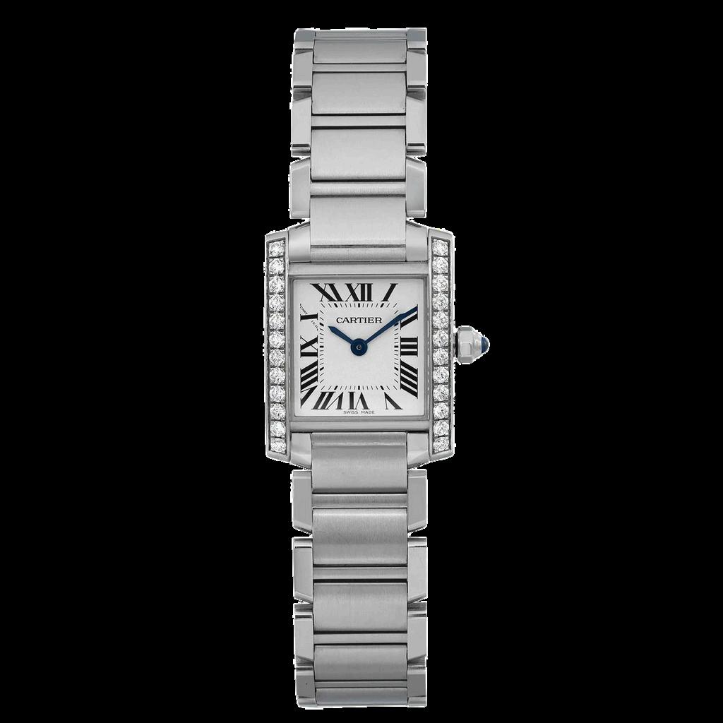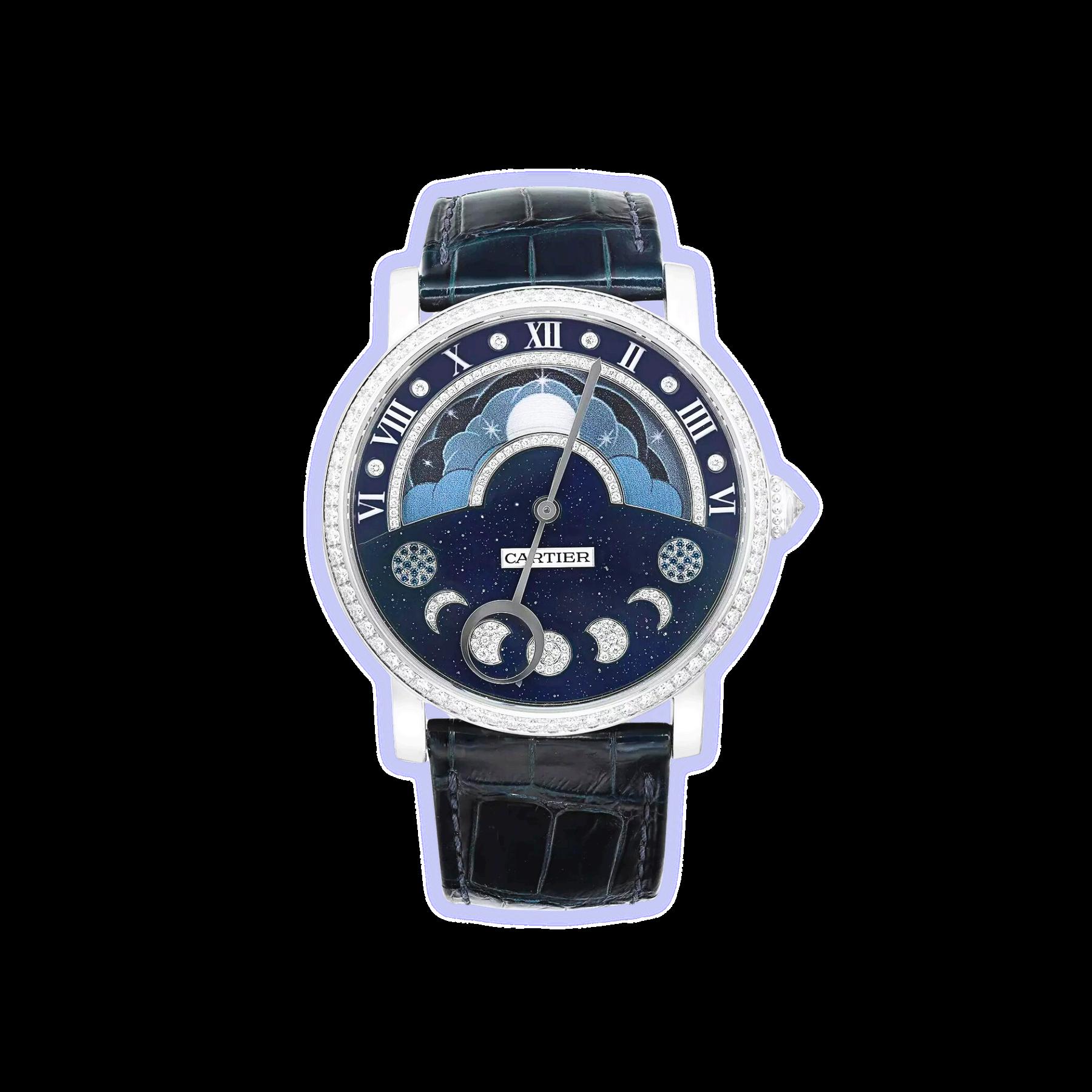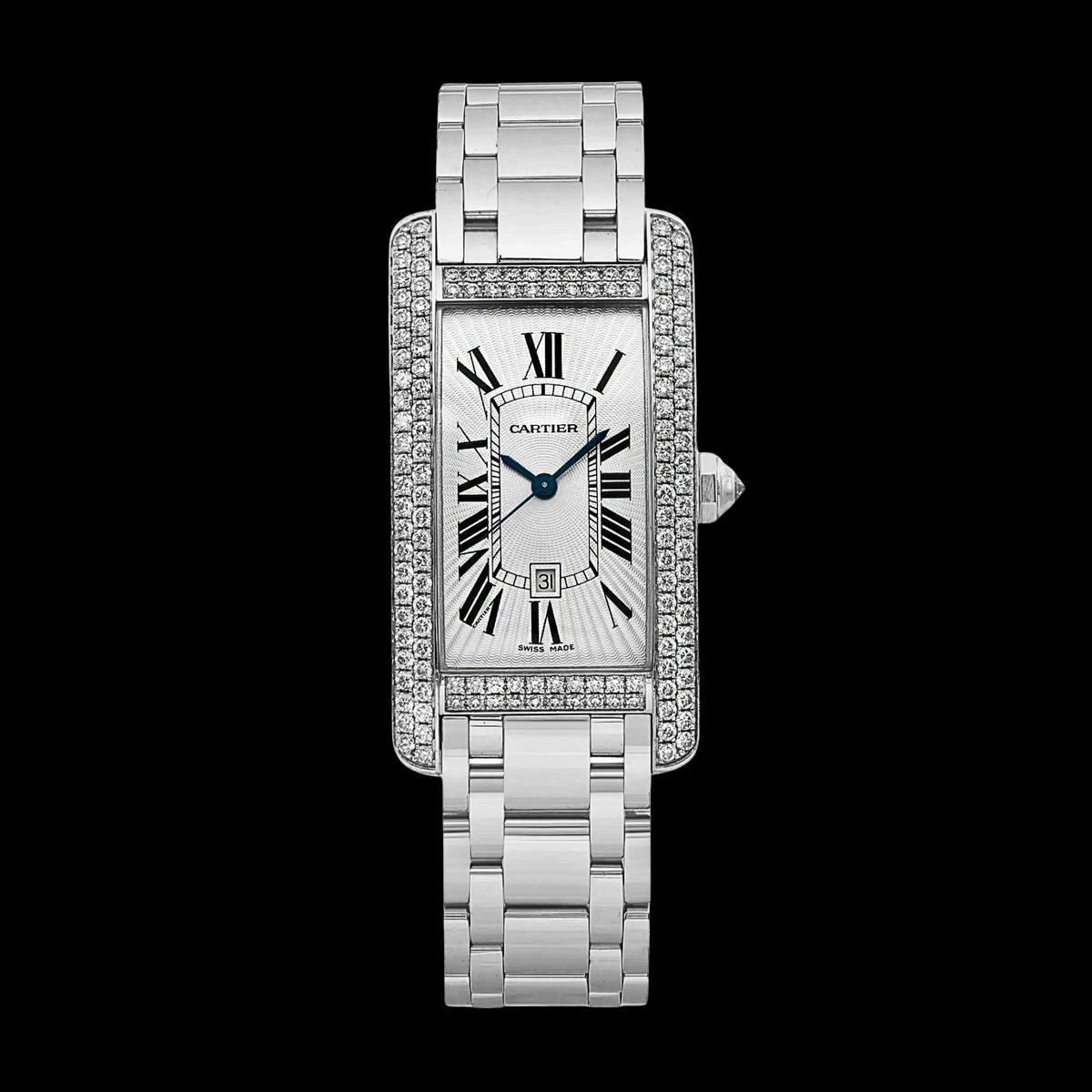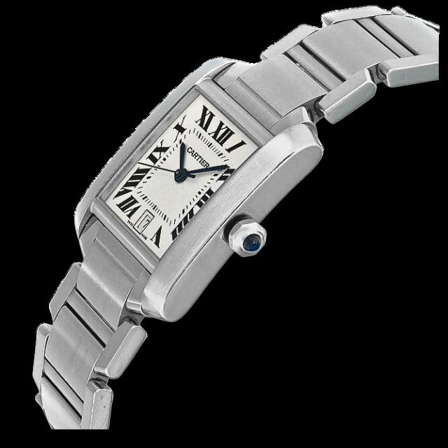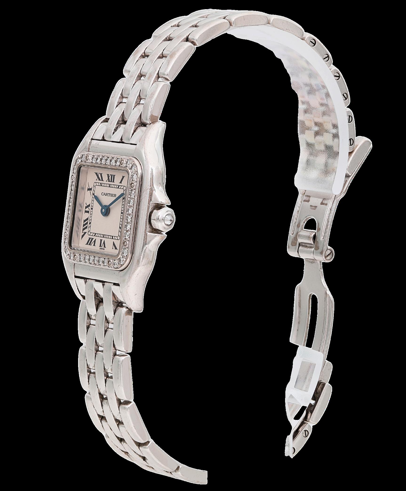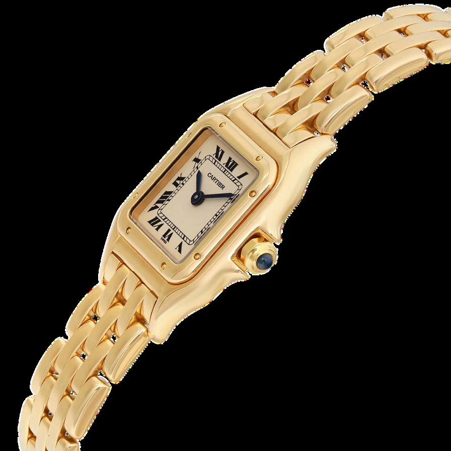 Classic Roman numerals on the dial Blued steel hands, a signature of Cartier’s elegant design