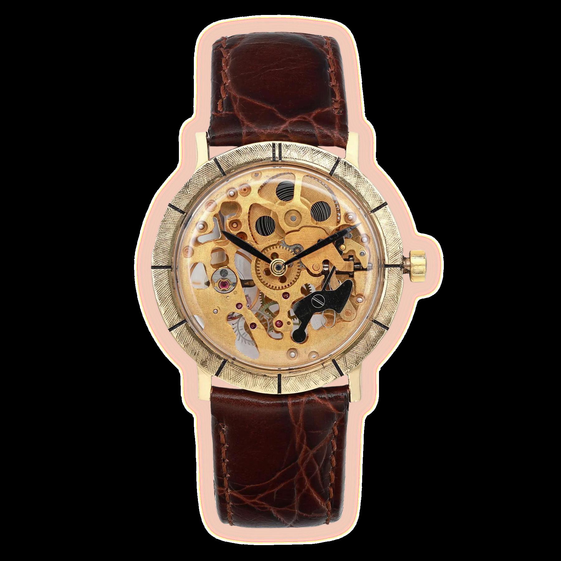 K Rose Gold Skeleton Dial