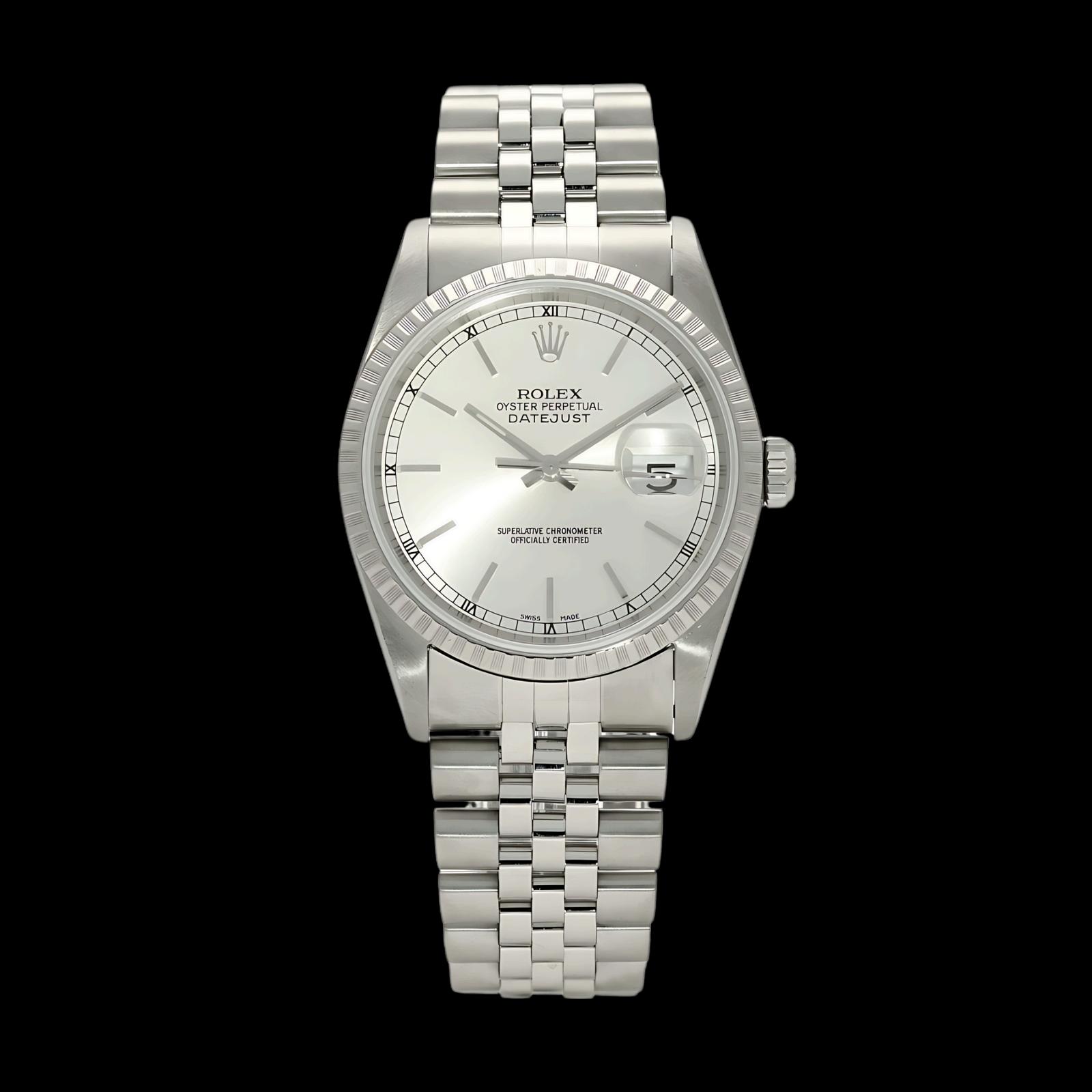 The Rolex Datejust Reference 16220 with a gray dial and Jubilee bracelet stands as a paragon of the brand's commitment to elegance and precision. This model features a distinctive gray dial, offering a contemporary twist on the classic Datejust aesthetic. The Jubilee bracelet, known for its comfort and stylish appeal, complements the stainless steel case, making this watch a versatile choice for both formal and casual wear. This timepiece is a testament to Rolex's enduring craftsmanship and innovative spirit.