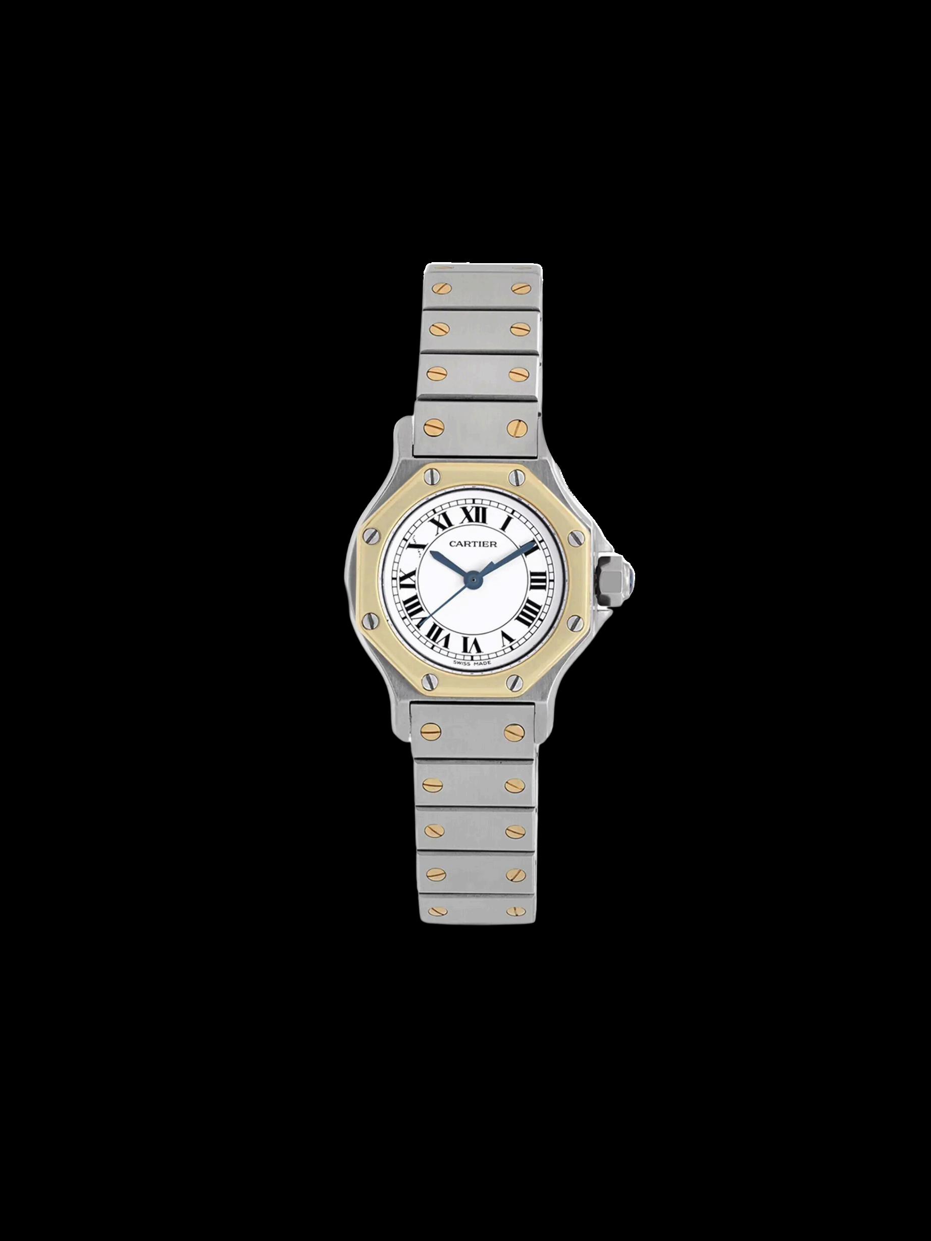 The Cartier Octagon - Two-Tone Gold & Stainless Steel is a striking example of Cartier's commitment to combining luxury with distinctive design. The octagonal shape of the case sets this timepiece apart, offering a unique geometric aesthetic that is both modern and classic. The twotone composition of stainless steel and yellow gold enhances its sophisticated appeal, making it an ideal choice for those who appreciate both style and heritage. This model, with its elegant proportions and refined details, represents the quintessence of Cartier's watchmaking excellence.