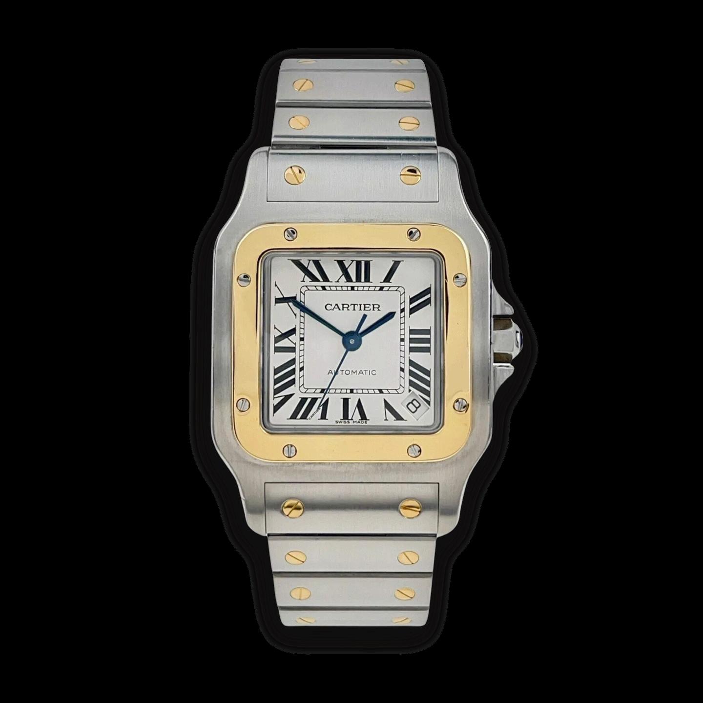 The Cartier Santos Galbée Reference 1506 is an iconic representation of Cartier's innovative spirit and enduring elegance. Originally designed in 1904 for aviator Alberto Santos-Dumont, the Santos series is celebrated for its pioneering role in the world of wristwatches. This particular model, with its two-tone design, exudes a luxurious yet versatile charm. The combination of stainless steel and yellow gold, along with the classic white dial featuring Roman numerals, makes it a standout piece in any watch collection.