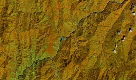 Satellite images need to be processed in order to look like figure 2, which is also known as ‘Natural Color’ after the combination of bands (Figure 1). This is due to the fact that infrared information captured by satellites is outside the human ocular perception. In order to make this spectrum visible it is necessary to use a software like ArcGIS, to combine the different bands and translate the images on an RGB combination to finally conduct the desired analysis. This image shows in a simple way how the images look and how the combination of bands can be applied to present a Natural Color image of the data.