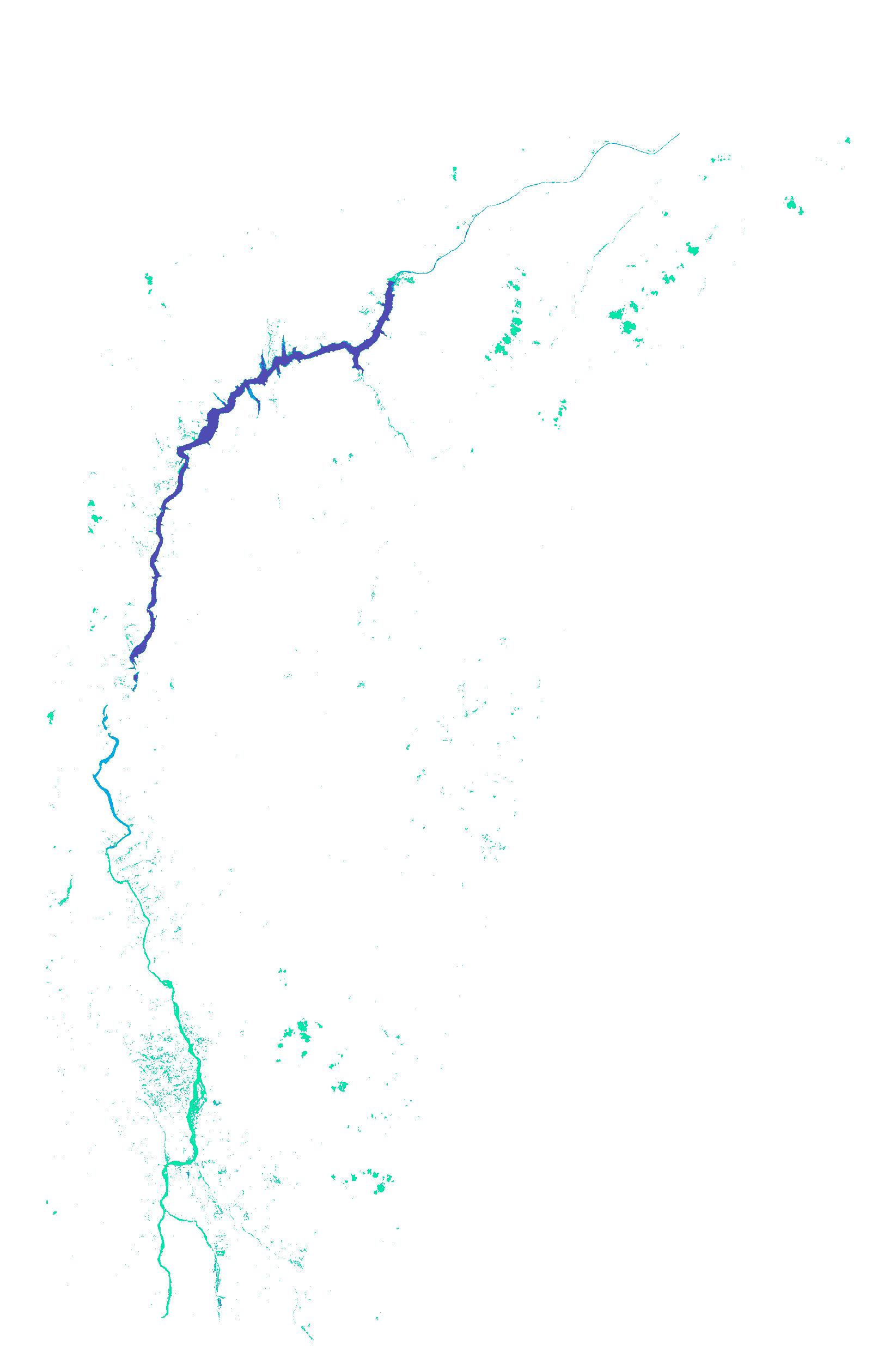 An experimental data visualization, and political project, which aims for the reconciliation of the relationship between an area and its history. Between 2018 and 2019 the C.river suffered an abrupt diversion caused by the construction of a dam. This was undoubtedly an environmental mistake, which led to irreparable damage to the area and the communities living along its banks. To tell the story of the C. River from a new perspective, I reconstructed the environmental impacts of the construction of the dam, using satellite information, and data from geographical remote sensing tools. A Normalized Difference Vegetation Index (NDVI) was used to translate this information into an installation that represents the changes the C.river has suffered. This project will consider the social context under a decolonized post humanist perspective, challenging geopolitical processes through assuming a new ecological perspective by accounting for non-human actors as political, and by shifting the scope to a decolonizing one. This project aims for a plastic space that will allow the re-signification, visualization and reconciliation between the territory and its story.