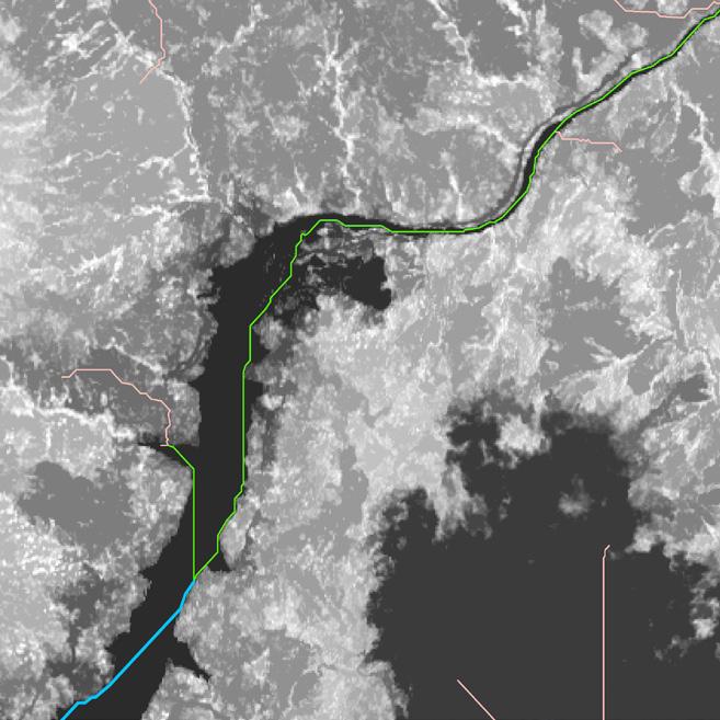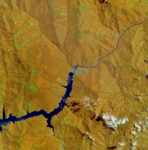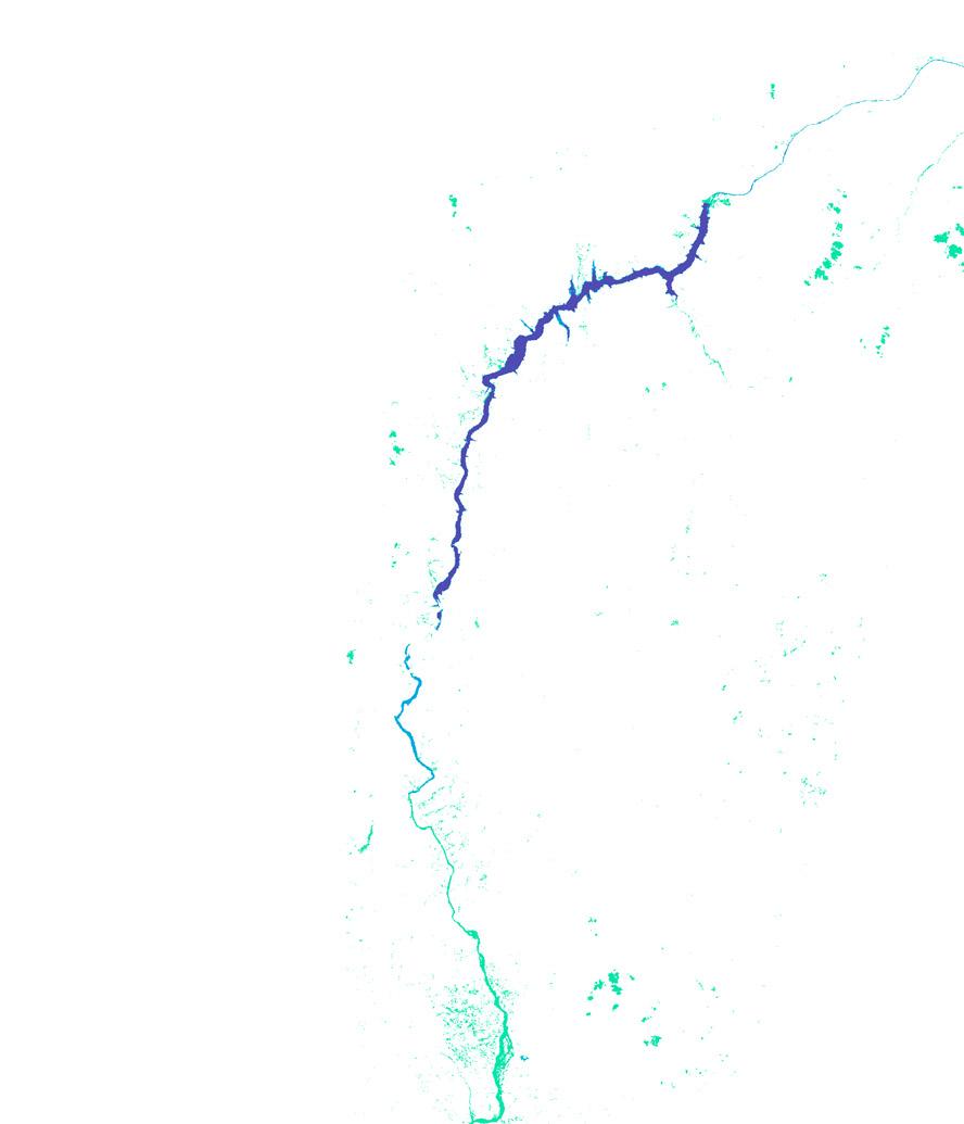 Remote sensing is an effective acquisition of land surveying data, based on spectral resolution, divided in visible and infrared electromagnetic wavelength intervals, such as NIR or SWIR. Each wavelength collection is classified into a band. For example, Sentinel2 uses a classification of 12 bands, and Landsat uses an eight-bands classification process. This combination of bands enables the visualization of simple graphical indicators that are convenient to process in Geographical Information Systems programs (GIS), like QGIS or ArcGIS. Using Remote Sensing allows to comprehend the different fluctuation in any kind of territory. Using two types of satellites, the Sentinel-2 and the Landsat, I scouted six different dates beginning with the 13th of May 2010 which marks the beginning of the bidding process in the C. River. On 18th December 2017, the contract process was close to an end and the construction of the dam had already started. Two of the four tunnels had to be closed on 25th September 2018 in order to control the high levels of water caused by the tropical rains. On 4th October 2018, the levels of water were so high that more than 12 regions were highly affected by it. Until 21st February 2019 the river was on 45 Image Satellite Corporation, ‘Sentinel-2A Satellite Sensor (10m)’, n.d., https://www.satimagingcorp.com/satellite-sensors/other-satellite-sensors/sentinel-2a/.