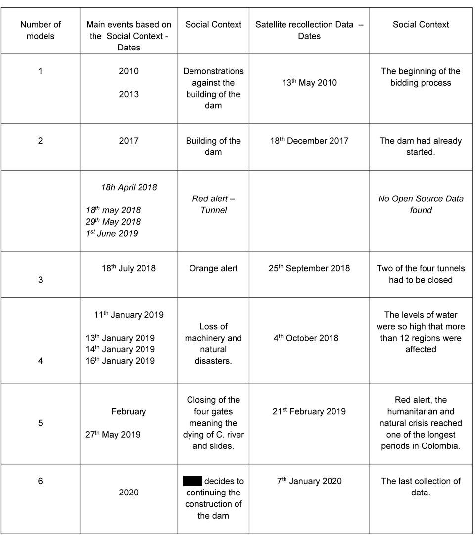 Considering the ecological catastrophe caused by the dam project, I use remote sensing data as a tool to approach the social context of this region and the challenges non-human agency faces. In this manner, I propose a possibility to reconcile this particular story that happened to the C. River under a decolonizing perspective. Throughout the years not only violence and injustice seem to characterize the reality of this region, but oblivion and disinterest. That is the reason why there is a need for change, and a need to approach this territory under another scope