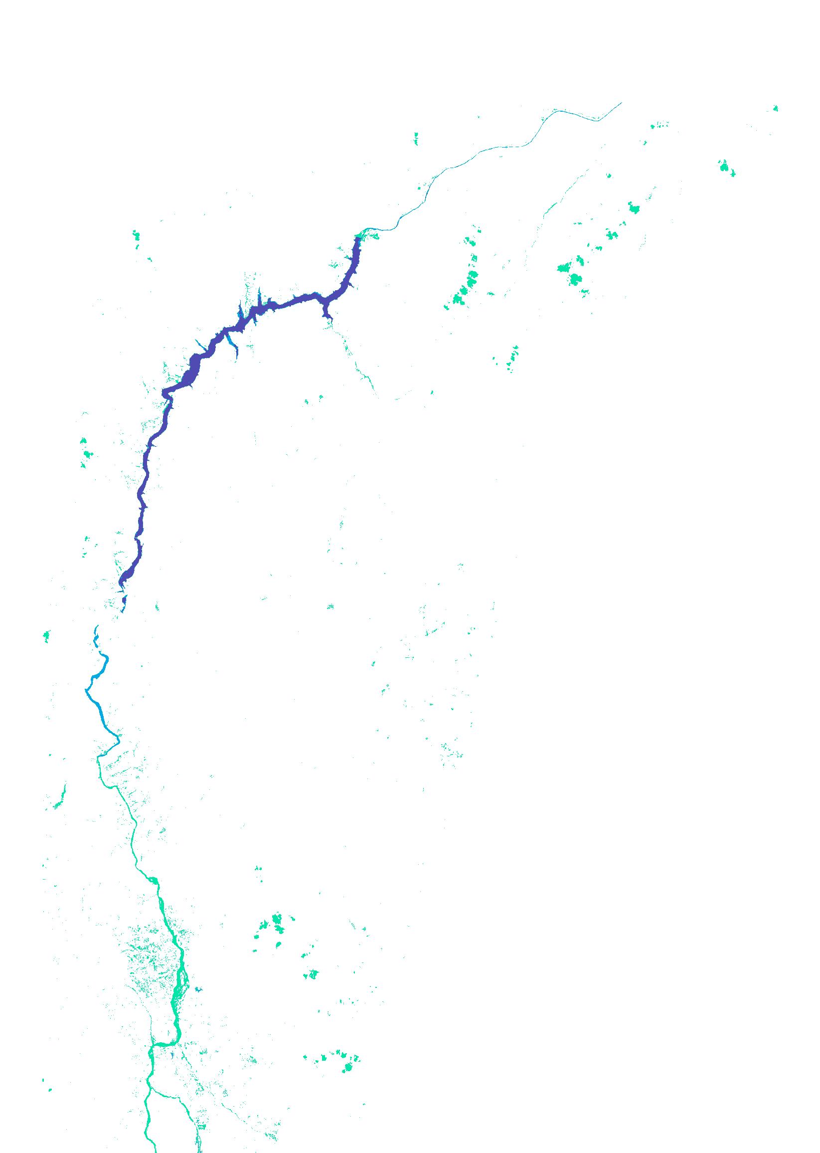 After coping with this methodology, I began a journey to walk with the traces of the C. River between 2010 and 2020. I analyzed the results of satellite information in this period using the Normalized Difference Vegetation Index (NDVI), that classifies the information into three main categories (water, soil, and vegetation). This index allows the classification of material based on their infrared reflective qualities. The results let me expose the traces of the river in its forced diversion in the last decade. In doing so, I could visualize the implication of an extractive frame of mind, and a reconciliation with this wounded territory - not with the intention to solve this, but to present the traces this event has left behind.