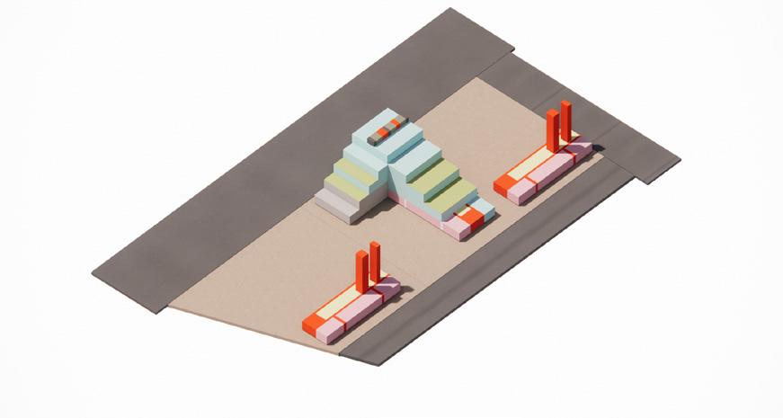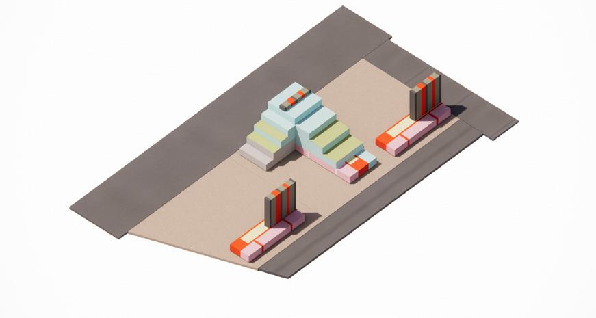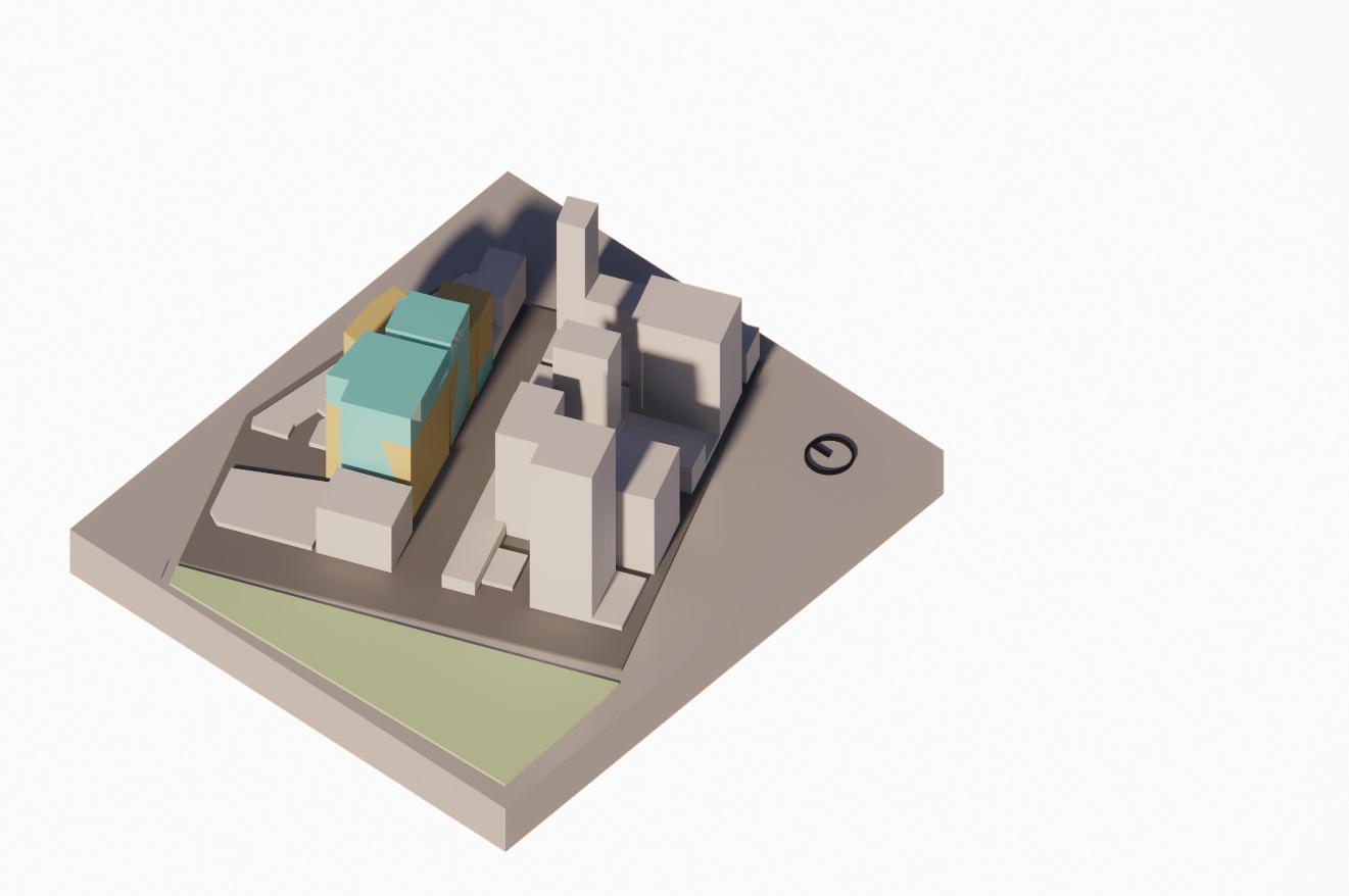 To emphasize and at the same time acting is a connecting strip is the actual built mass sitting in a neutral connecting zone. A permeable yet demarcating and loud proud standing monumental piece is visualized.