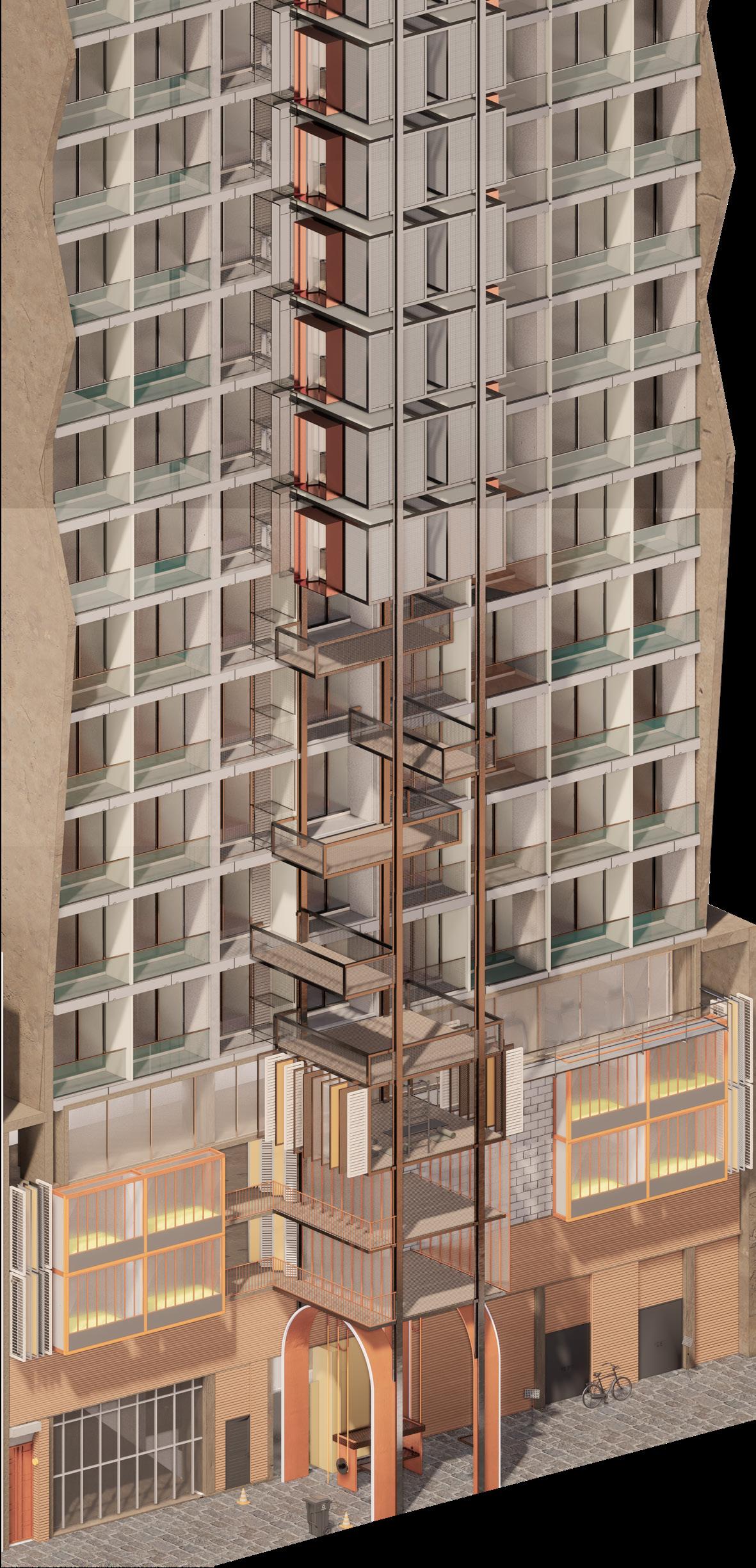 Out door gym that sits on the outskirts of the existing gym, occupying one of the levels of the tower.
