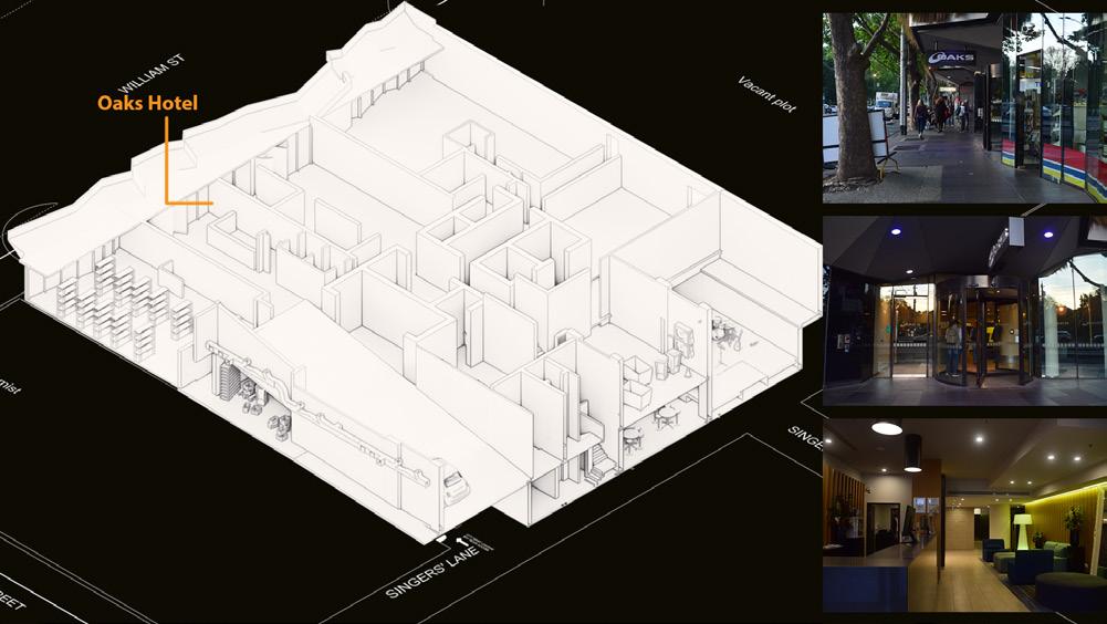 Project Location - 350 William St. Melbourne 3000 Oaks Hotel Front Desk where I observed everything from Building car park entry - rear entry point