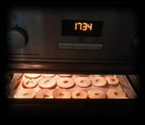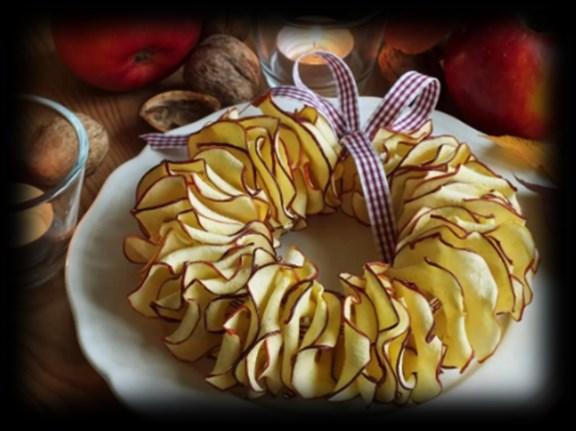 Do mísy nalijeme litr studené vody a rozmícháme citronovou šťávu. Umytá jablka zbavíme jadřince a nakrájíme na tenké plátky a ty namočíme ve vodě s citronovou šťávou. Jablka usušíme a položíme na plech s pečicím papírem. Dáme do trouby a pečeme s mírně otevřenými dvířky na 50 stupňů asi hodinu. Poté jablka otočíme a další hodinu pečeme stejným způsobem. Křížaly necháme vychladnout při pokojové teplotě. Takto připravené křížaly navlečeme na barevnou stužku a věneček je hotový.
