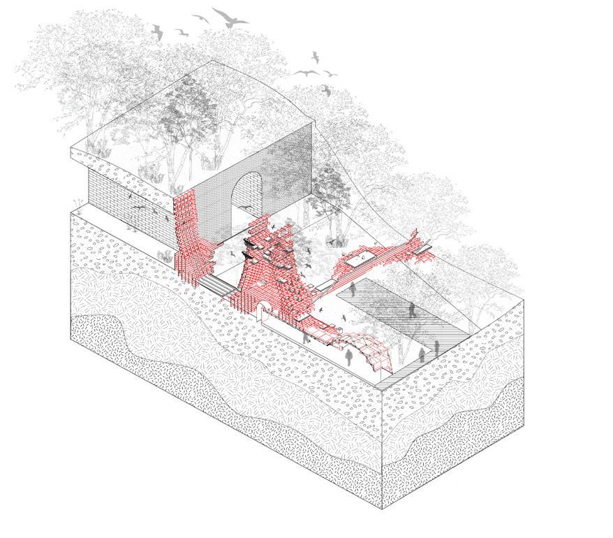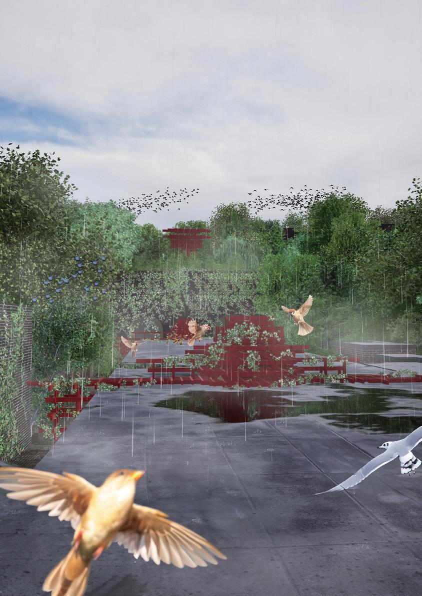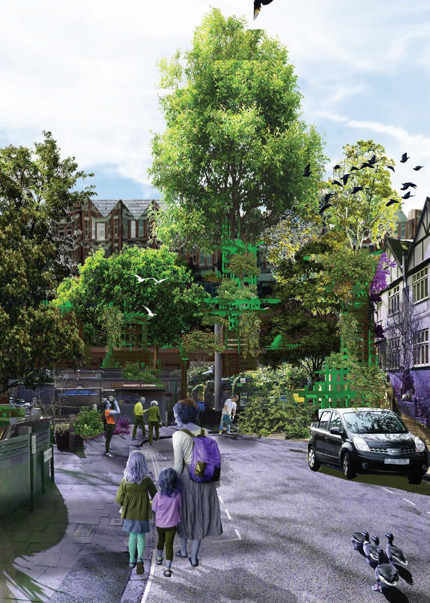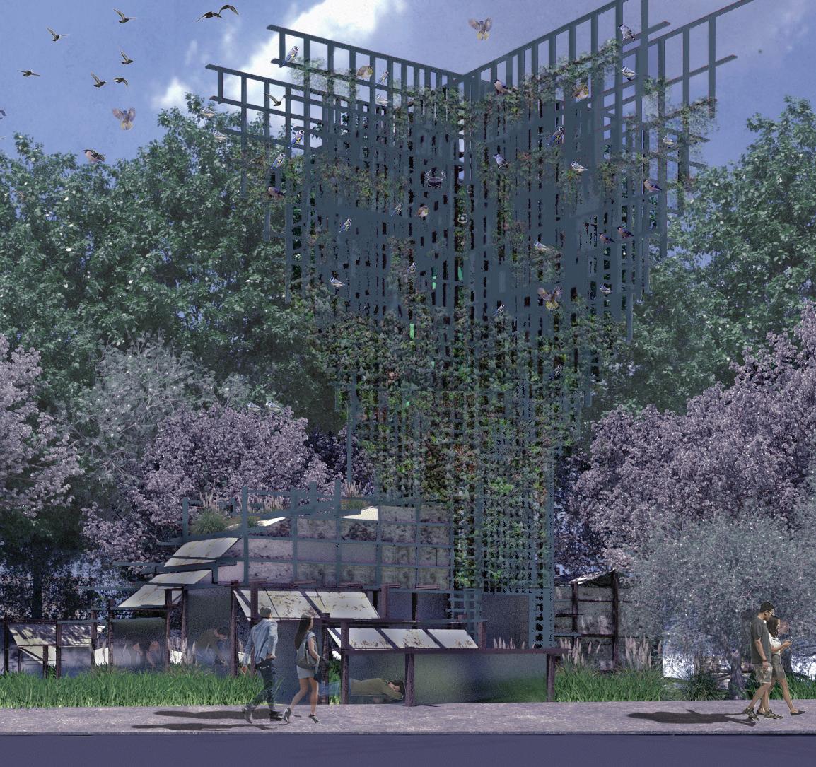 Bioblend is a posthuman architecture design project represents the potential to expand its focus and become more connected to nature and non-human species, including research and data collection on local ecologies and biodiversity in the greater London area and specifically to our site, Old Highgate Overground station, as a priority Habitat area and a critical biodiversity hotspot in London’s city landscape. Our design interventions manifested into a simple form which try to reduce impact to the existing site as much as possible that can evolve over time and become a critical link and “home” for a broader biodiversity network. It also explore the potential for posthuman architecture to evolve into an ecosystem service.Bioblend seeks to redefine the clientele of architectural design and use specific species as design drivers to provide infrastructure for the ever-changing needs of nature. As a part of our analysis, we visualized the biodiversity network as a topography of high and low levels to show the web-like nature of biodiverse avenues. After discovering that Highgate station is located within a priority habitat zone, meaning that it is a critical area for conserving biodiversity, we imagined how this could be showcased, cultivated, and ultimately maintained. We chose three keystone species that help to build resilience which are fungi, bee, bat, and bird.