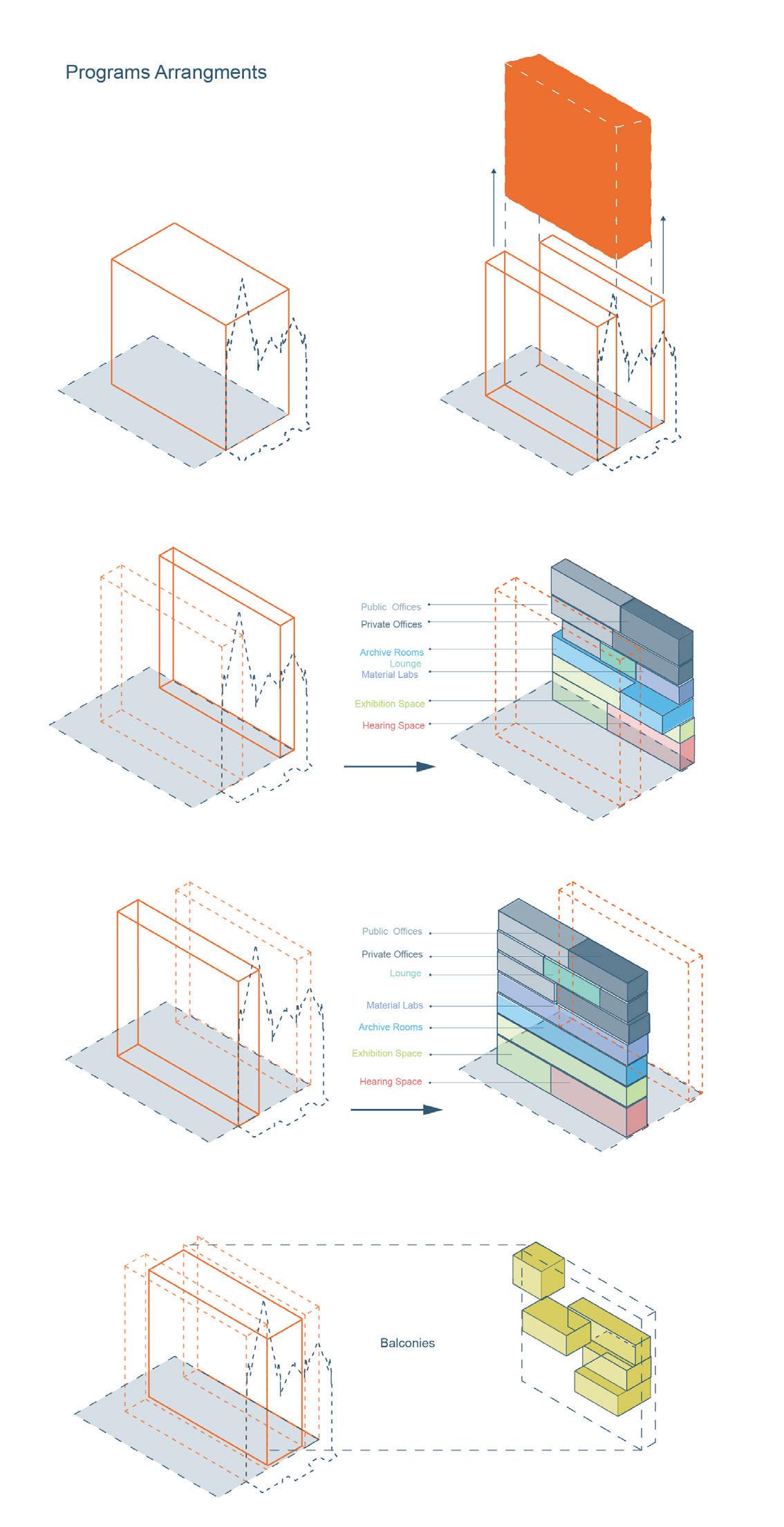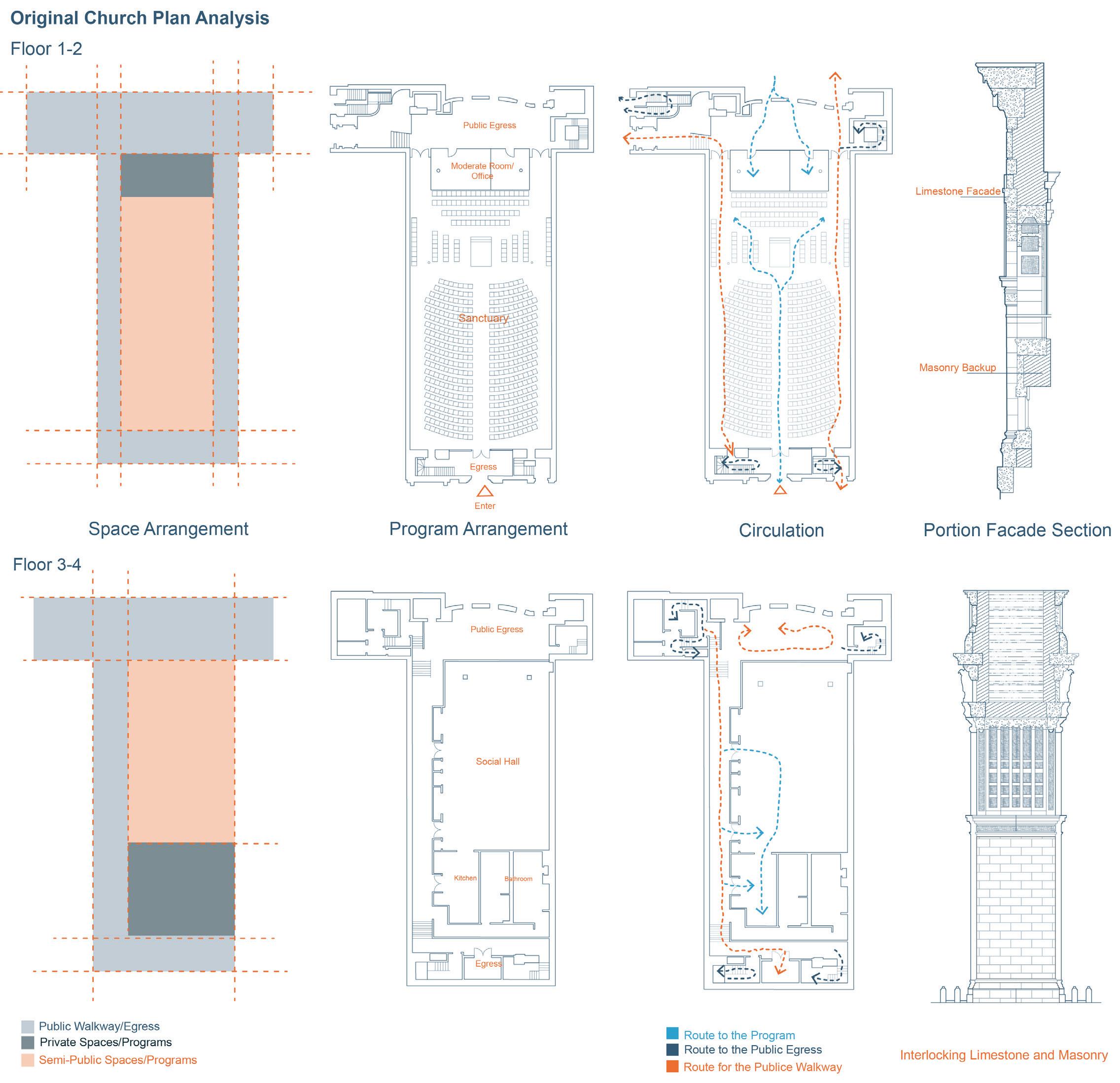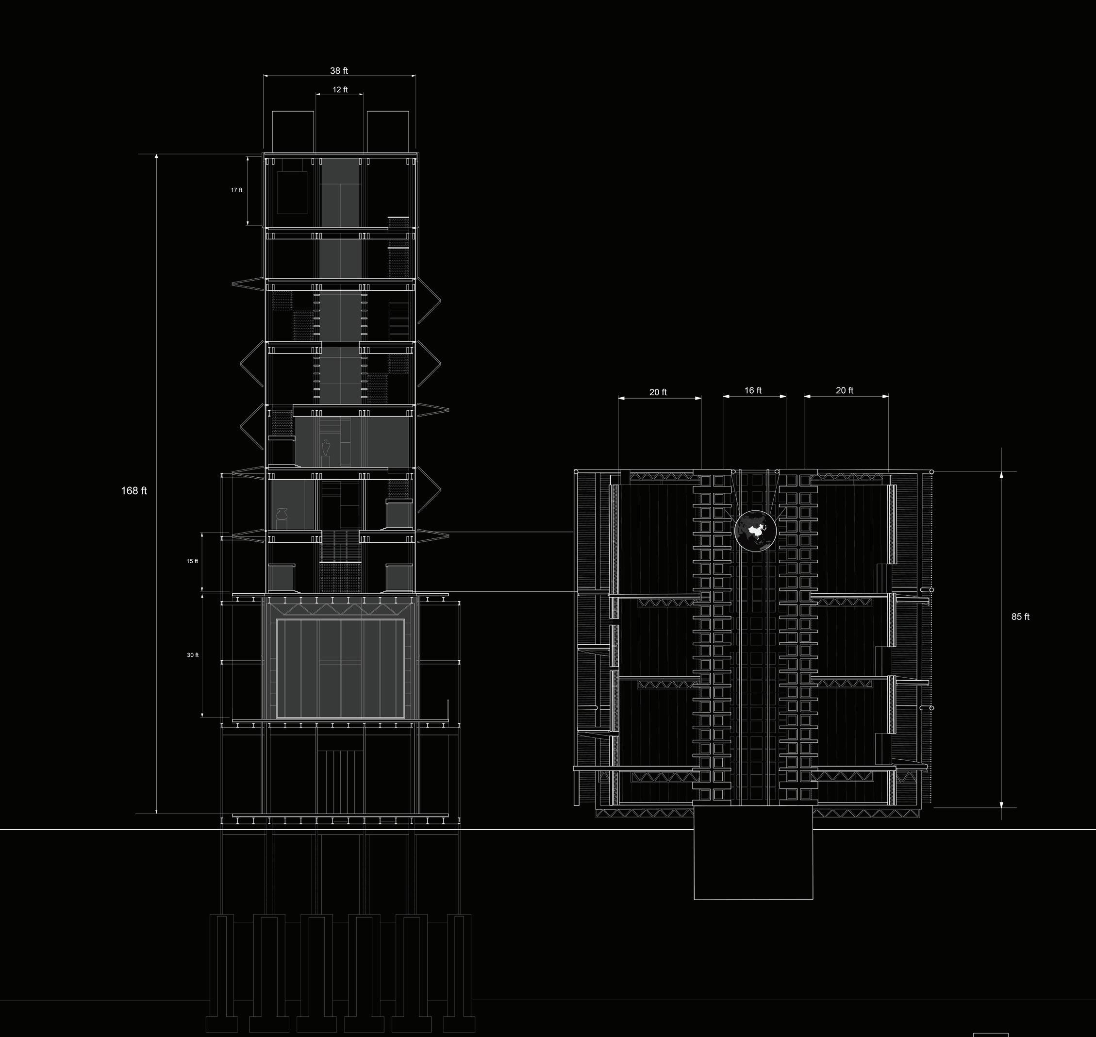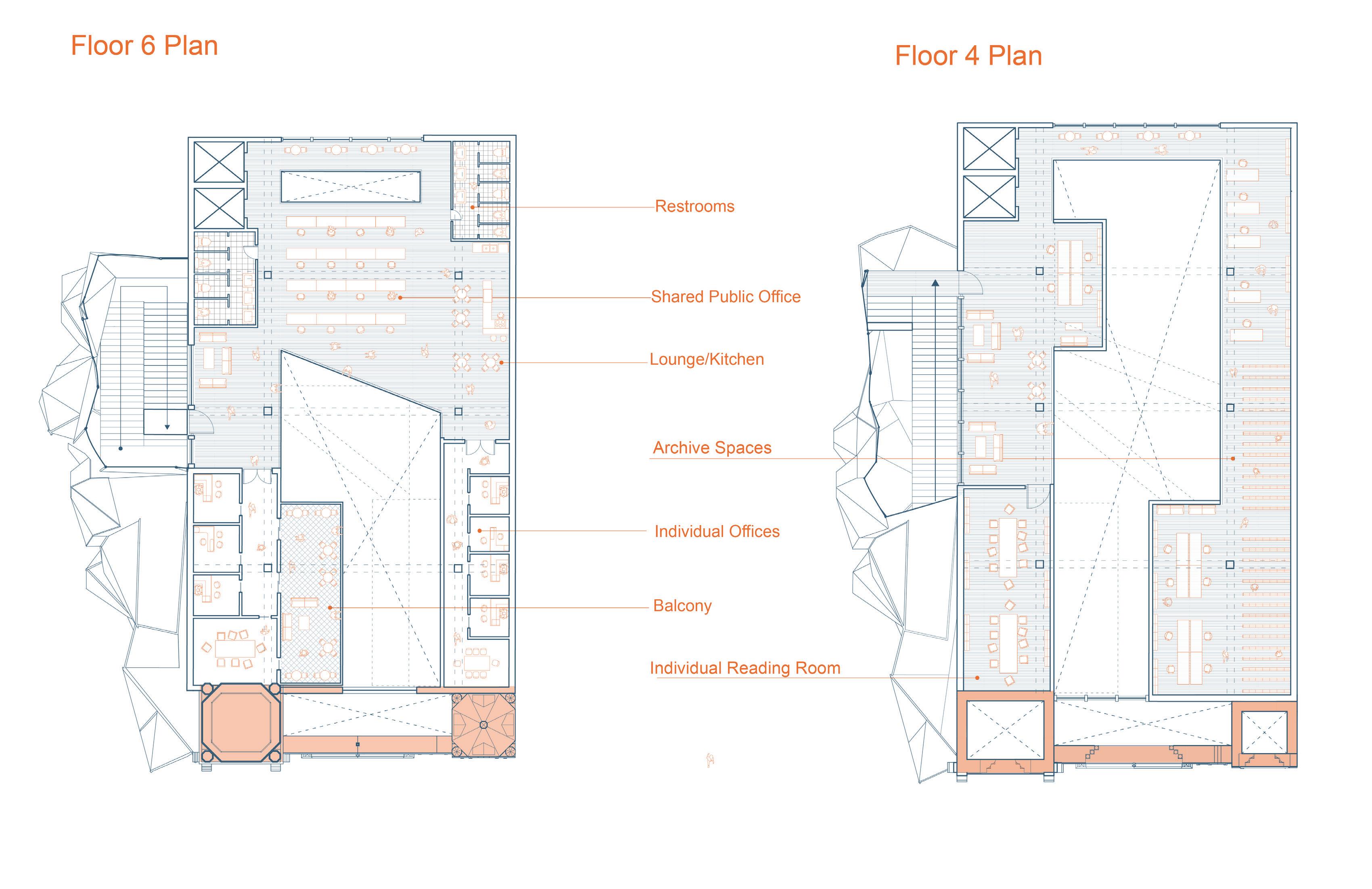 Floor 8-9: Exposure-Exposure of content, featuring the biased opinions, news, and rumors that is initially experienced. Floor 6-7: Library-individual research and discovery can be made. Floor 4-5: Museum-museum of Chinese cultural, political and social background, which begins to uncover the layered and commplex history of the event. Floor 3: Contemplation-rooms of isolated contemplation. Floor 2: Chapel-The chapel as a space of final resolve before existing the building.