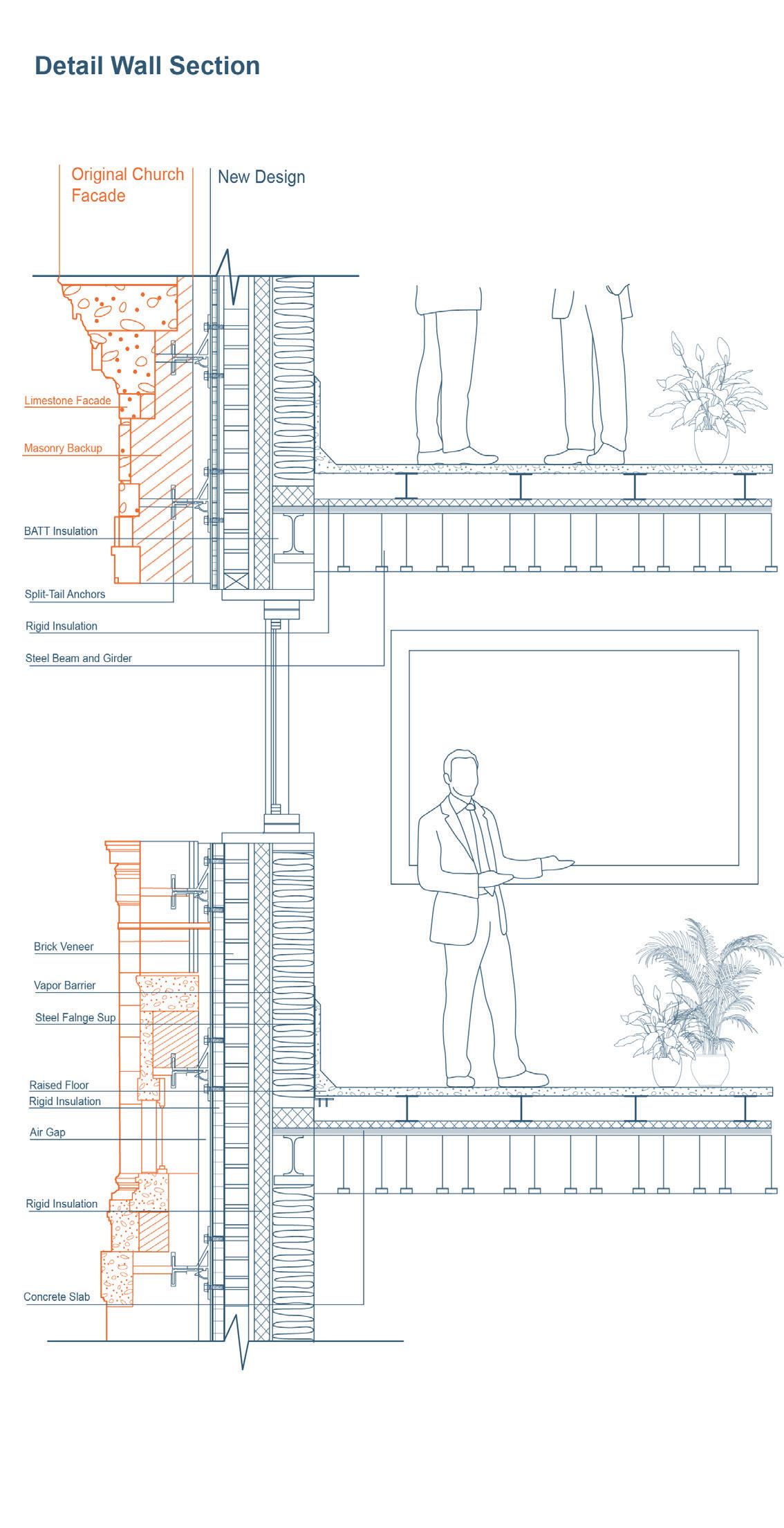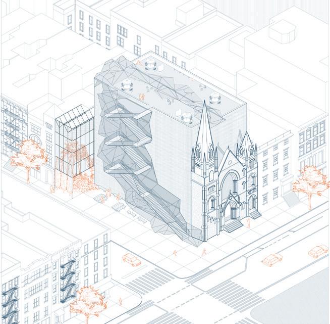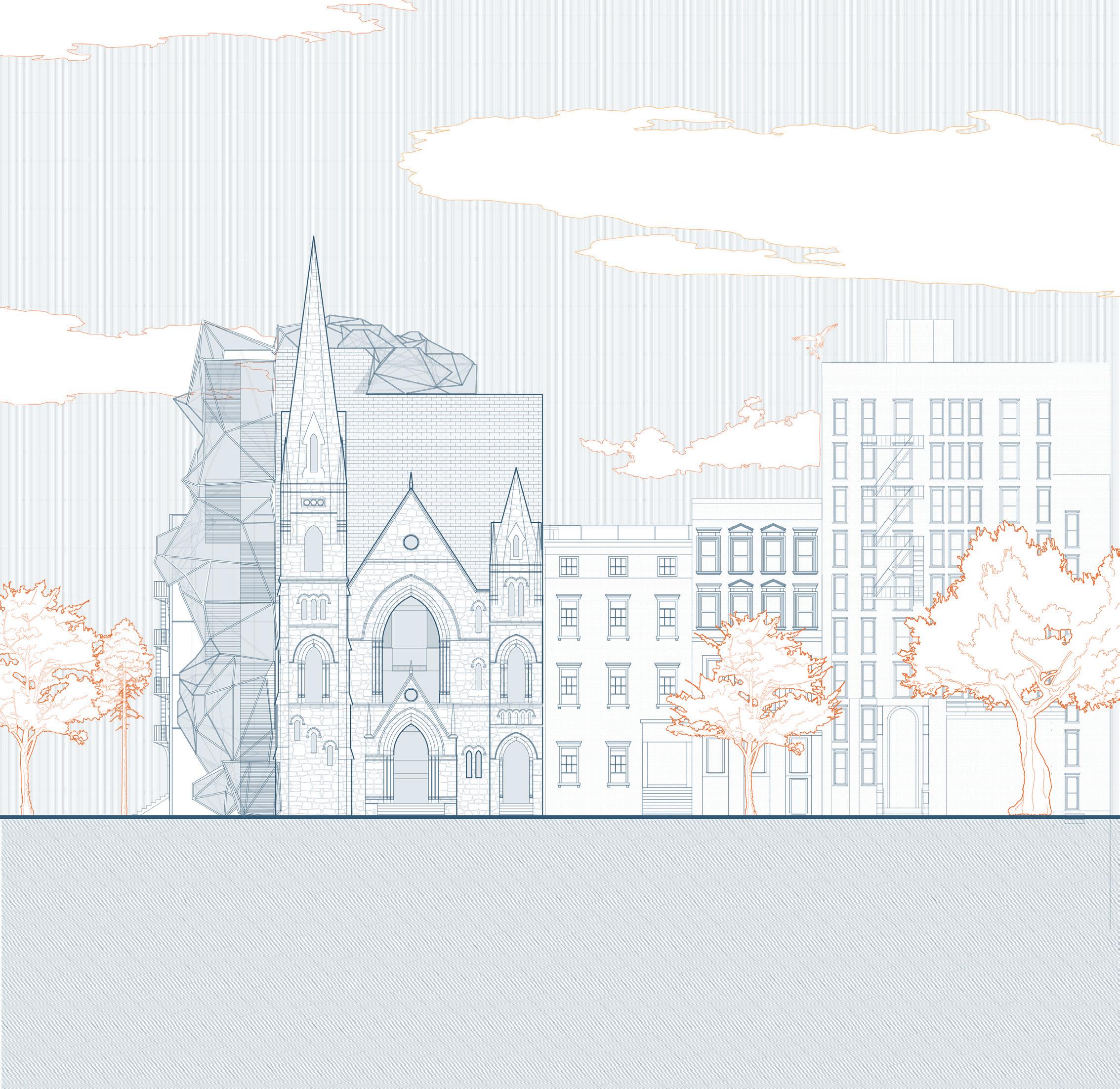 The preservation of these historic district seems to have put an end to most new development projects, and some renovation projects to upgrade old buildings into high-end residences have pushed up housing prices. Some small pop stores can no longer afford the store rent and are about to go out of business one after another; There are no small local bars or restaurant here in east village anymore. “Nowadays, they have tourist nightclubs and tourist celebrity chef restaurants, partygoers, and they lose the local food, bars and other retail stores that were once dedicated to serve the local community. And I noticed that the only free public roof garden in nyc is opened at NYPL’s new midtown branch. That’s the reason why we want to create more public gardens no matter on the ground or within the building. We want to give back the spaces to the community on the meantime to reach the program we want and the preservation of the church facade.