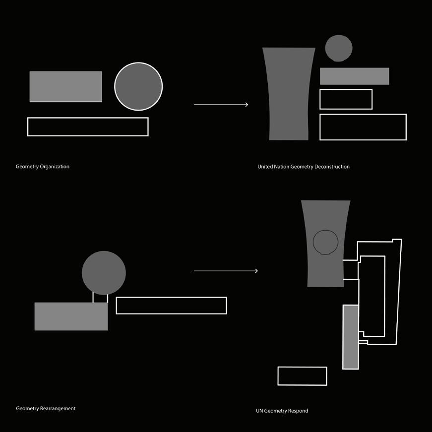 Located in the water at the end of 42nd st in NYC, the context of the building site includes a rich context of social gathering. Facing off the memorial-museum at the far end of the street lay the international audience at the United Nation Headquaters directly facing the memorial. Especially the forms of the Secretariat Building (Which reflects the concept of government oversight) and the Assembly Building (which reflects the concept of assembly and speech) Initially inspired the placement and forms of the project. The circulat space in the assembly hall also serves as a space for international discussion of worldwide conflict. The Daily News Building, designed by John Mead Howells and Raymond Hood, served as a unique “tower” within the New York City of skyscrapers. Within the entrance of the lobby, stands the large vintage sculpture of the globe in the center of the room. At the crossroads of travel in New York City is the Grand Central Station and Metlife Building. The architect, Simon Ungers, released a proposal for a restaurant and nightclub space at the crown of the building in the shape of a globe-like sphere. Located in the near center of the street is Bryant Park, which is a well known space for social events and gatherings in the city. Overlooking the site of the Museum-Tower is the Chinese Consulate. Previously a Sheraton Hotel, the building features on the top floor a circular carousel lounge.