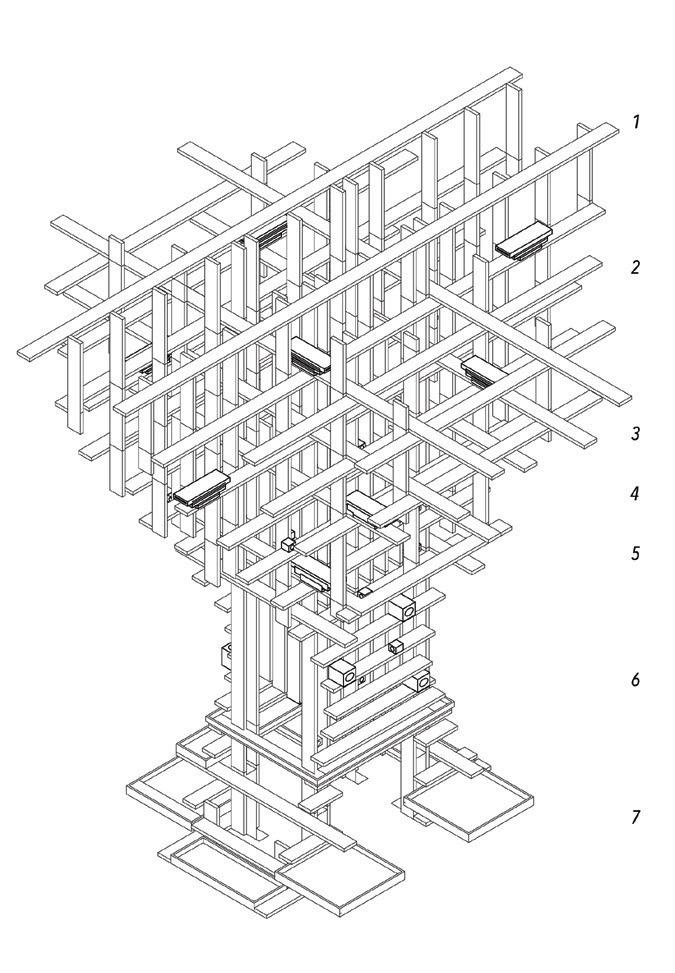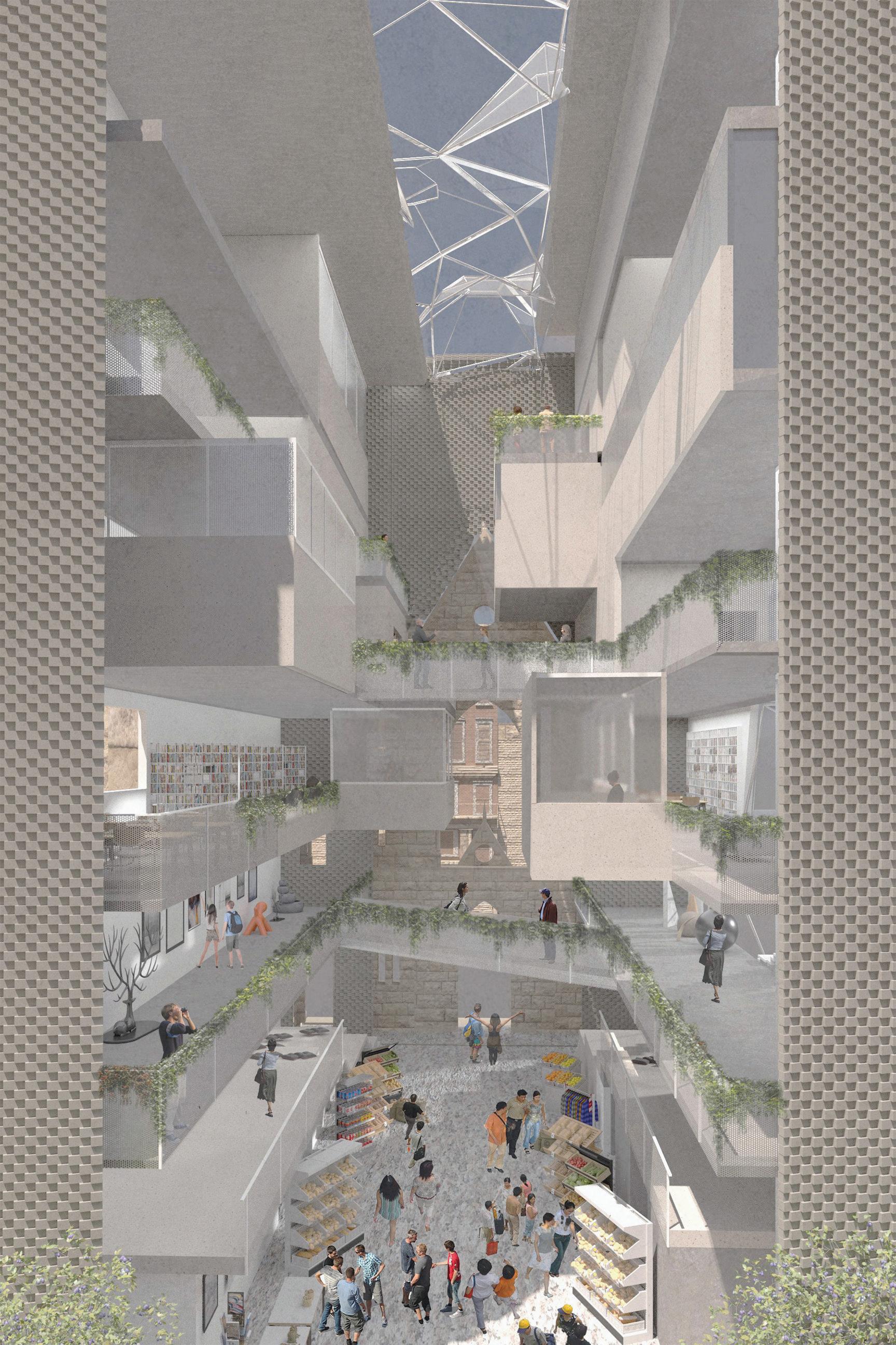 This is a project try to speculate on possible urban futures, exploring the idea of Top Down and Bottom Up (Small-unit programs within large frame program) and “street in the sky”.