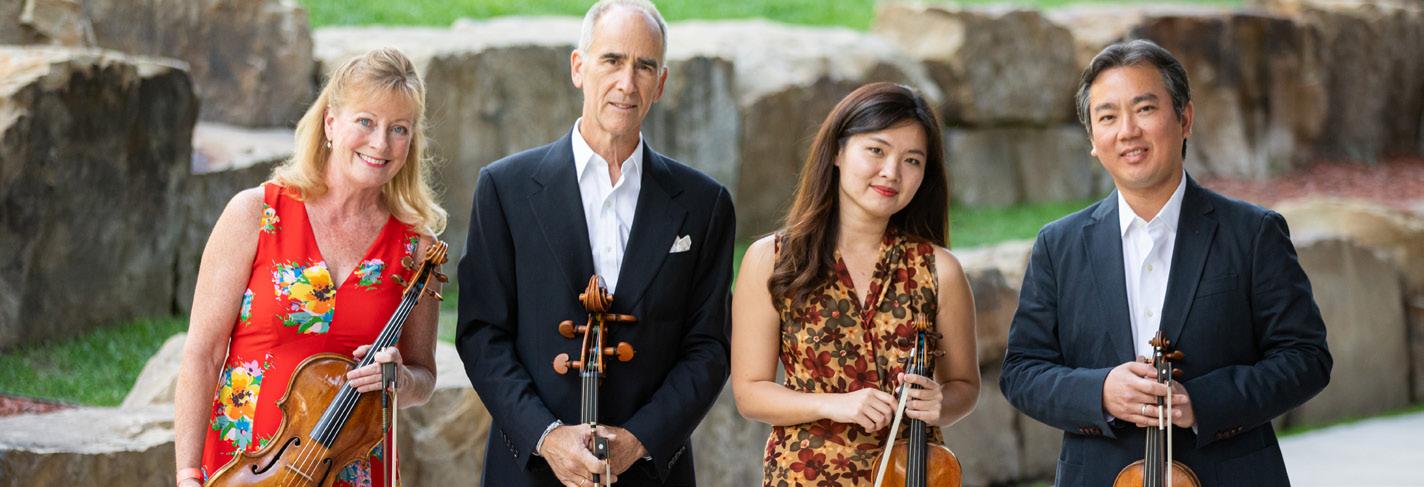 The New York Philharmonic String Quartet comprises four Principal musicians from the Orchestra: Concertmaster Frank Huang (The Charles E. Culpeper Chair); Principal Second Violin Group Qianqian Li; Principal Viola Cynthia Phelps (The Mr. and Mrs. Frederick P. Rose Chair); and Principal Cello Carter Brey (The Fan Fox and Leslie R. Samuels Chair). The group was formed in January 2017, during the Philharmonic’s 175th anniversary season; the New York Philharmonic String Quartet made its debut as the solo ensemble in John Adams’ Absolute Jest in New York in March 2017, and reprised the work on the Orchestra’s EUROPE / SPRING 2017 tour. All four members are multiple prize winners, have appeared as concerto soloists with the Philharmonic and orchestras around the world, and have appeared frequently in the Philharmonic’s chamber music series at David Geffen Hall and Merkin Concert Hall.