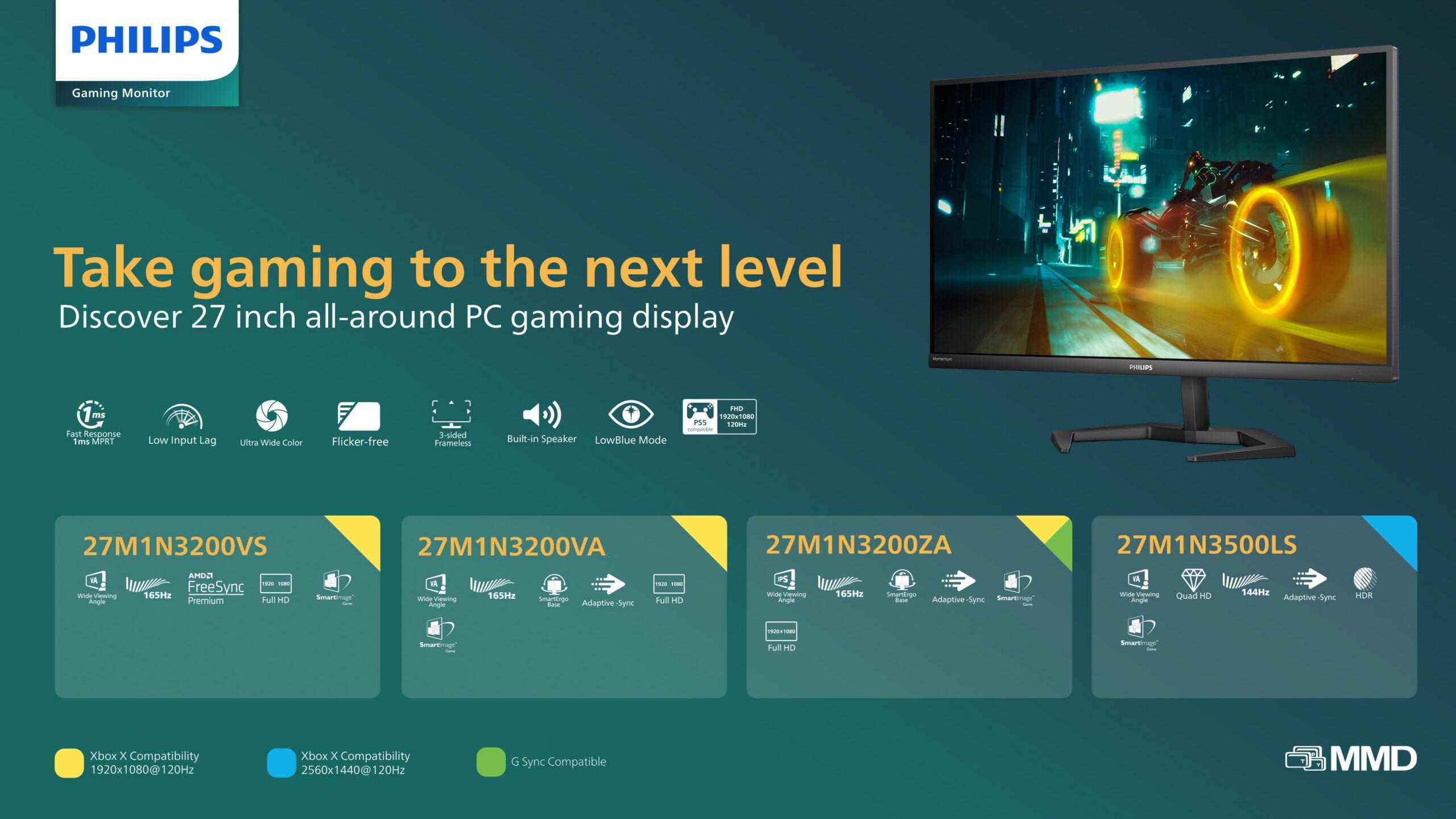 27M1N3200VA, 27M1N3200VS, and 27M1N3200ZA come with a refresh rate of up to 165Hz, VA LCD while 27M1N3200ZA offers the same refresh rates for IPS LCD. Each one of them offers maximum compatibility support with your GPU through Adaptive Sync, AMD FreeSyncTM Premium, and G Sync. At the same time, SmartImage Game is featured in 27M1N3200VA, 27M1N3200VS, and 27M1N3200ZA to give you superior image quality while 27M1N3500LS takes things to the next level with the use of SmartImage Game HDR for improved 4K. Together with Xbox, Philips has developed the ultimate solution for the new Series X consoles and offers a completely new gaming experience for console gaming with its monitors. With Full HD resolution at 120Hz and with up to 4K resolution at 120Hz for 27M1N3500LS, the Momentum series is the next evolution in gaming monitors. M3000 SERIES For more info CLICK HERE! 121764 121765 122122 121766 S